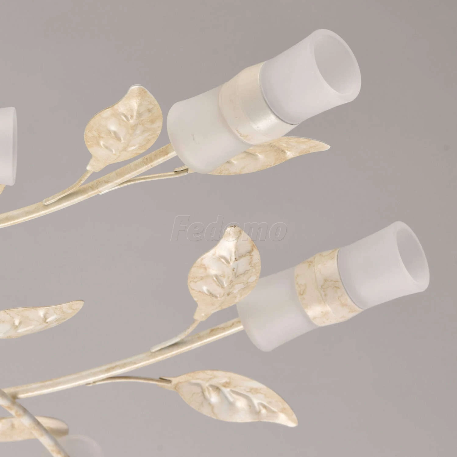 Люстра из коллекции «Верона» напоминает сказочное вьющееся растение. Флористический мотив делает композицию особенно легкой и воздушной. Металлическое основание трендового белого оттенка дополнено эффектом патины цвета золота. Под стать основанию – плавно
