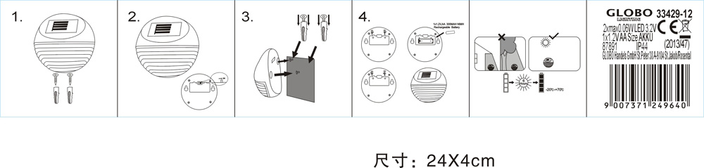 Настенный светильник уличный 33429-12 из серии Solar от компании Globo украсит кафе, веранду и беседку, фасад, выполненные в стиле современный, техно. Основной цвет и материал изготовления - серый металл, материал плафона - пластик. Светодиодная модель с мощностью лампочки 0,06W, напряжением 3,2V имеет 1 плафон. Степень защиты от влаги и пыли IP44. Габариты изделия: диаметр - 110 мм. Модель устанавливается на монтажную пластину. Лучшая цена и условия доставки на Globo 33429-12 в интернет-магазине Fedomo.ru.