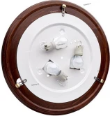 Материалы исполнения База - металл. Плафон - декорированное стекло. Цвет арматуры бронзовый. Плафон в цвете: коричневый. Особенность: центробежное стекло с рисунком. Декор рамка, материал декора дерево, цвет коричневый. Наименование 336 SN 101 св-к LUFE WOOD стекло E27 3*100Вт D560.