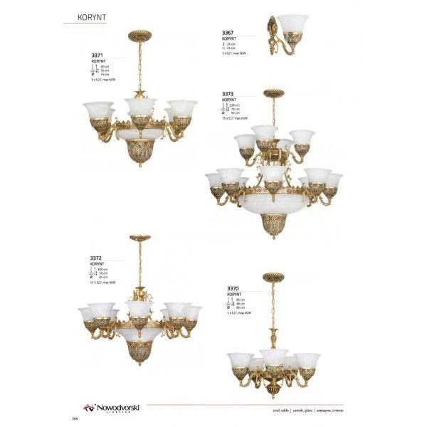 Люстра подвесная большая 3372 из серии Korynt от компании Nowodvorski регулируется по высоте и устанавливается на монтажную пластину. Классическая люстра прекрасно подойдет в качестве источника основного света для гостиной, кафе, холла, оформленных в стиле ампир. Основной цвет модели - белый, материал арматуры - металл. Люстра имеет 9 плафонов со свечением вверх, материал изготовления - матовое стекло. Модель оснащена цоколем E27 (11xE27), имеет 11 лампочек с общей мощностью 660W и напряжением 220V. Светильник поддерживает подключение диммера. Габариты: диаметр - 850 мм. Лампочки в комплект не входят. Лучшая цена и условия доставки на Nowodvorski 3372 в интернет-магазине Fedomo.ru.