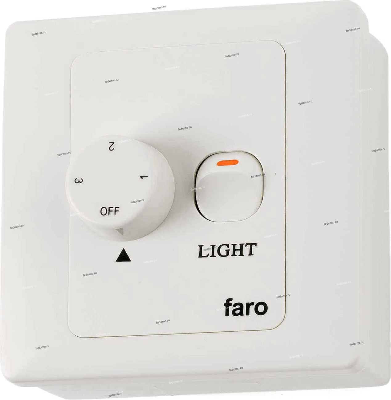 Настенный регулятор имеет 3 режима скорости вращения вентилятора, а так же оснащен кнопкой включения светильника. Максимальная мощность нагрузки составляет 100W.