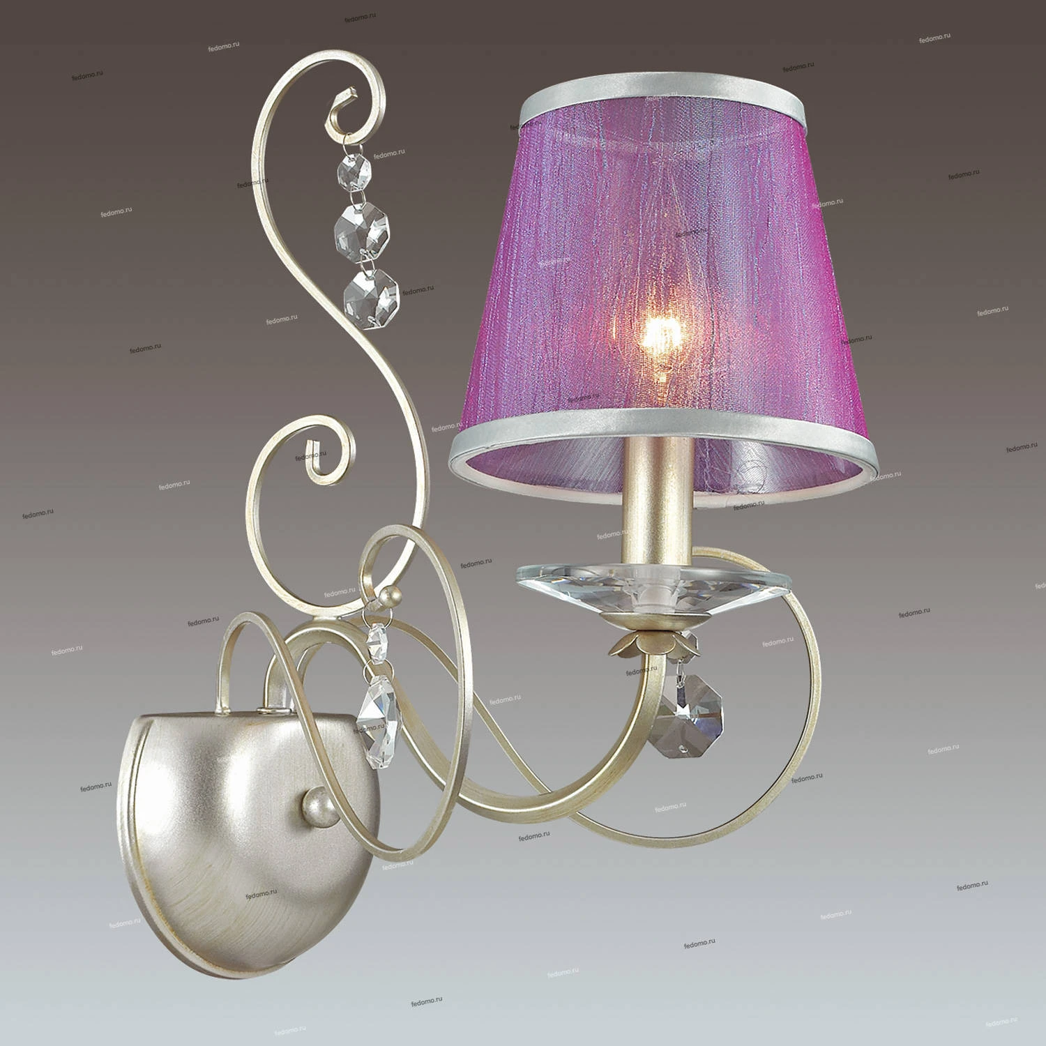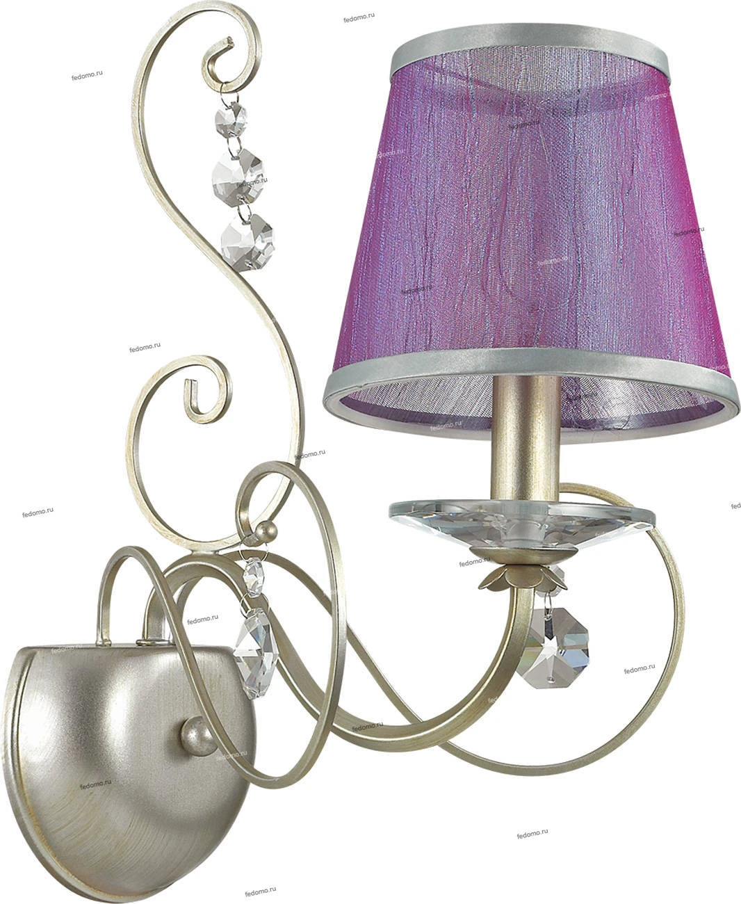 Материалы исполнения арматура, декор: металл, хрусталь, плафон: ткань. Цвет арматуры серебро. Плафон в цвете: фиолетовый. Особенность: для использования со скрытой проводкой. Декор подвеска, материал декора хрусталь, цвет прозрачный. Бра 3396/1W серии Zibille оформлено в классическом стиле. Светильник составляют красиво изогнутые металлические элементы и рожок в цвете "матовое золото" с серебристой патиной. Полупрозрачный абажур насыщенного сиреневого цвета, по краям украшенный серебристой каймой и так гармонично сочетающийся с матовым золотом, подарит атмосферу изысканности, творчества и утонченности. Цоколь E14. Мощность 1*40W. Нет ламп в комплекте. Наименование 3396/1W ODL17 392 мат.золото/серебр.патина/абажур ткань/хрусталь Бра E14 40W 220V ZIBILLE.