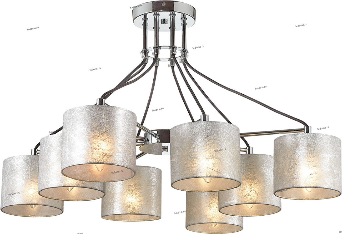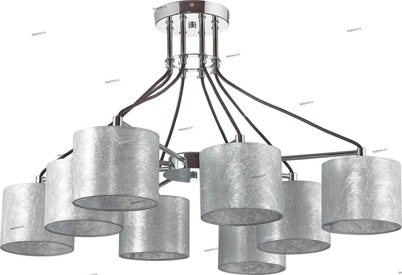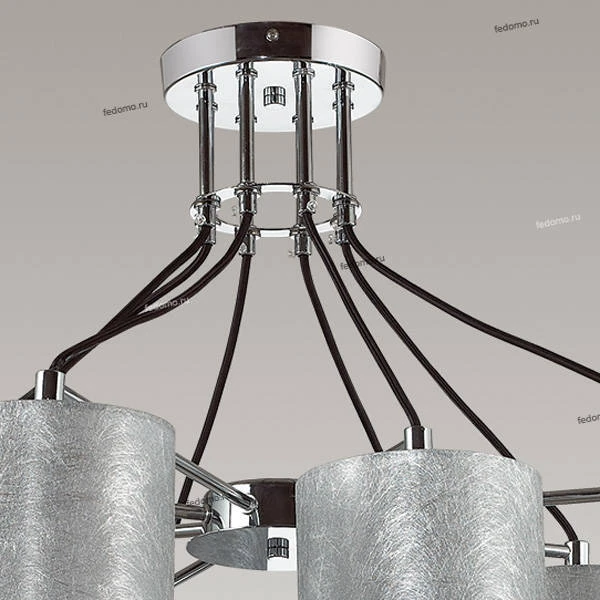 Материалы исполнения арматура, декор: металл; абажур: ткань. Цвет арматуры хром. Плафон в цвете: серебро. Стильный, актуальный и современный дизайн серии Odri не оставит никого равнодушным благодаря используемым в ней оригинальным деталям: оригинальная фактура серебристых тканевых плафонов, чёрные шнурки, создающий эффектный контраст с хромом. Наименование 3412/8 LN17 089 хром/абажур ткань Люстра потолочная E14 8*40W 220V ODRI.
