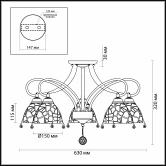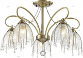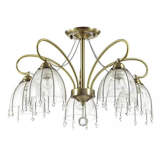 Материалы исполнения арматура, декор: металл, цепочки, хрусталь; плафон: стекло. Цвет арматуры бронзовый. Плафон в цвете: прозрачный. Декор подвеска, материал декора хрусталь, цвет прозрачный. В серии Arletta используется основание цвета бронза и уникальные стеклянные плафоны, произведенные по французской технологии Кракле (Сraquel?) с эффектом растрескавшегося стекла. Плафоны оригинально декорированы каскадами металлических цепочек с хрустальными подвесками на конце. Наименование 3414/5C LN17 181 бронзовый/стекло/декор цепочки Люстра потолочная E27 5*40W 220V ARLETTA.