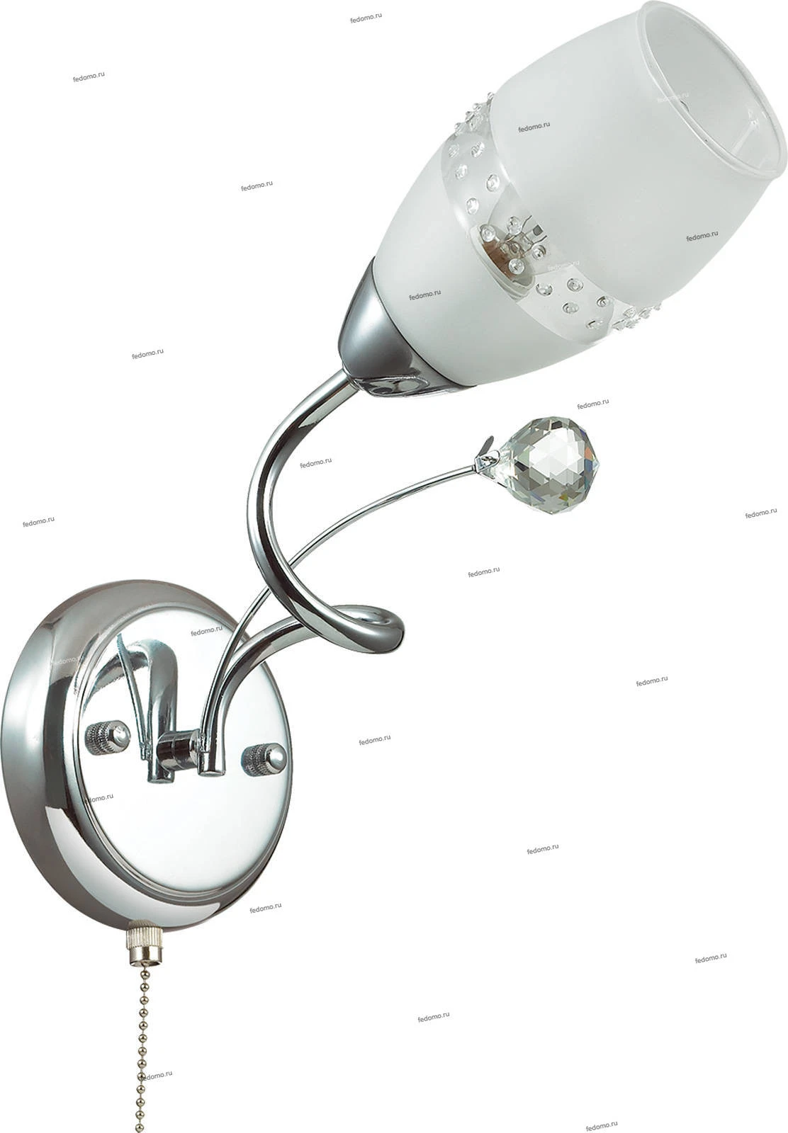 Материалы исполнения арматура, декор: металл, хрусталь; плафон стекло. Цвет арматуры хром. Плафон в цвете: белый. Особенность: для использования со скрытой проводкой. Декор подвеска, материал декора хрусталь, цвет прозрачный. Серия Rozemunda - легкая, воздушная серия с витыми рожками в цвете "хром", белыми матовыми плафонами с декором. Светильник изящно декорирован хрустальными элементами, прекрасно гармонирующими с обликом светильника. Наименование 3446/1W LN17 153 хром/плафон стекло/декор хрусталь Бра E14 60W 220V ROZEMUNDA.