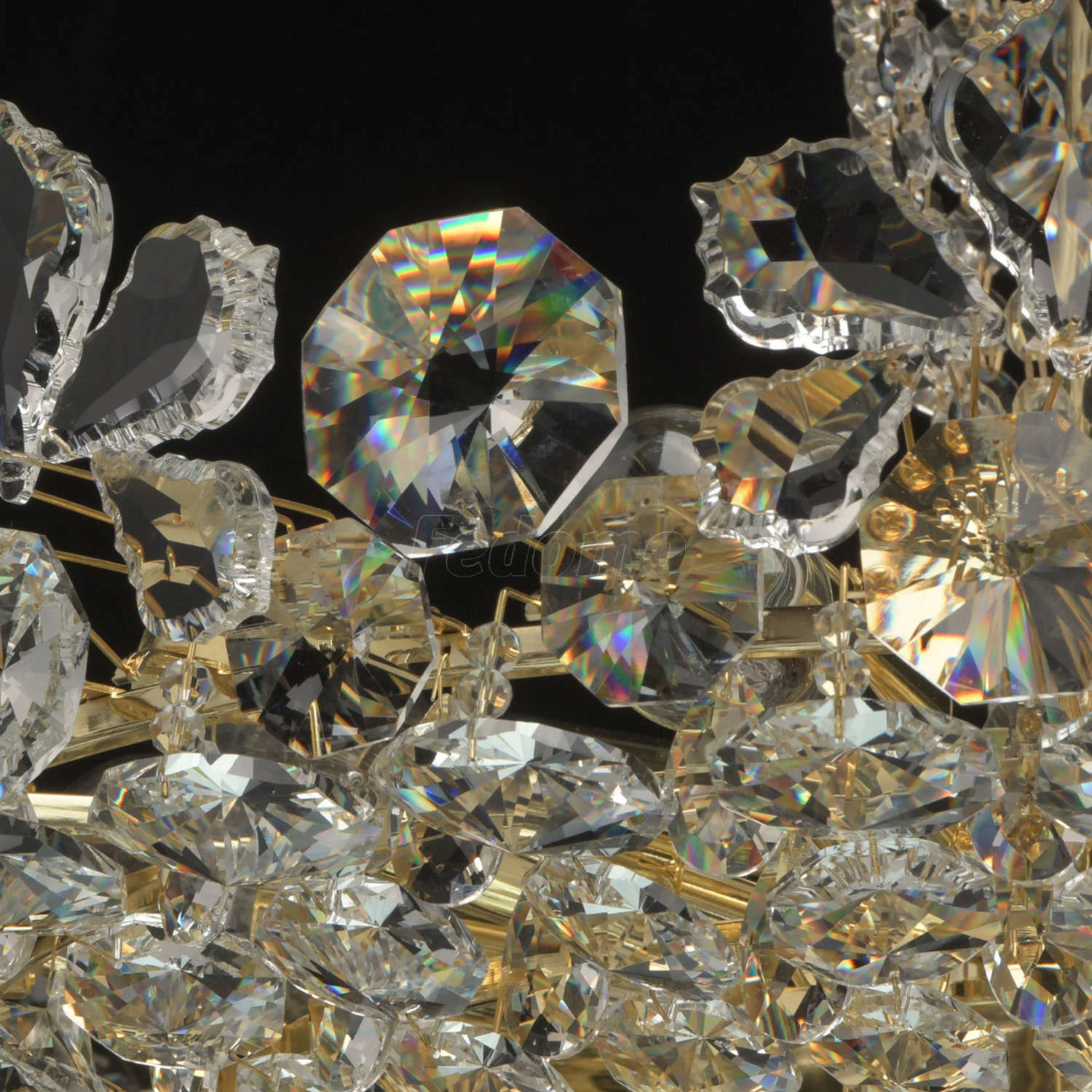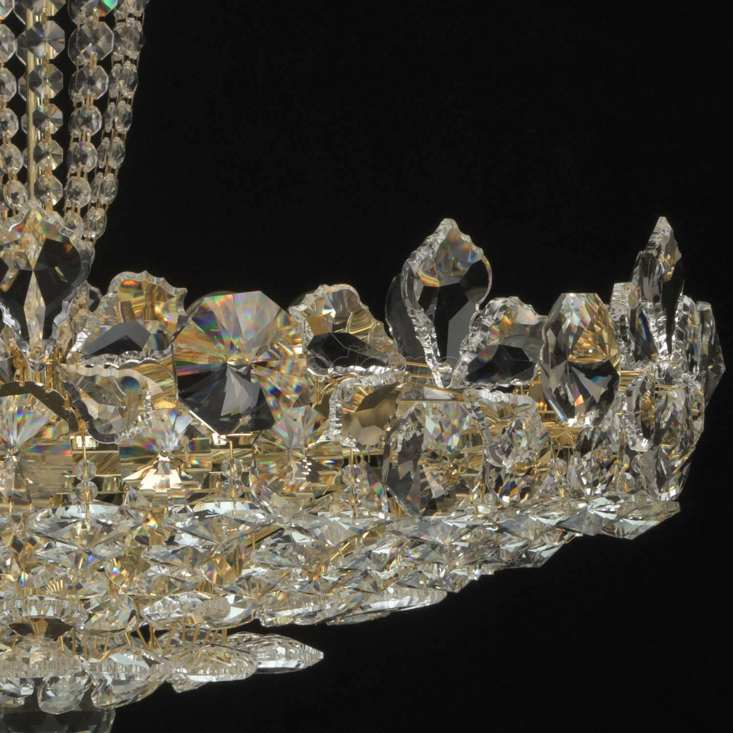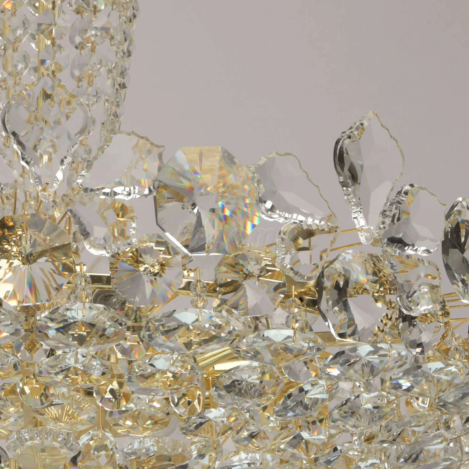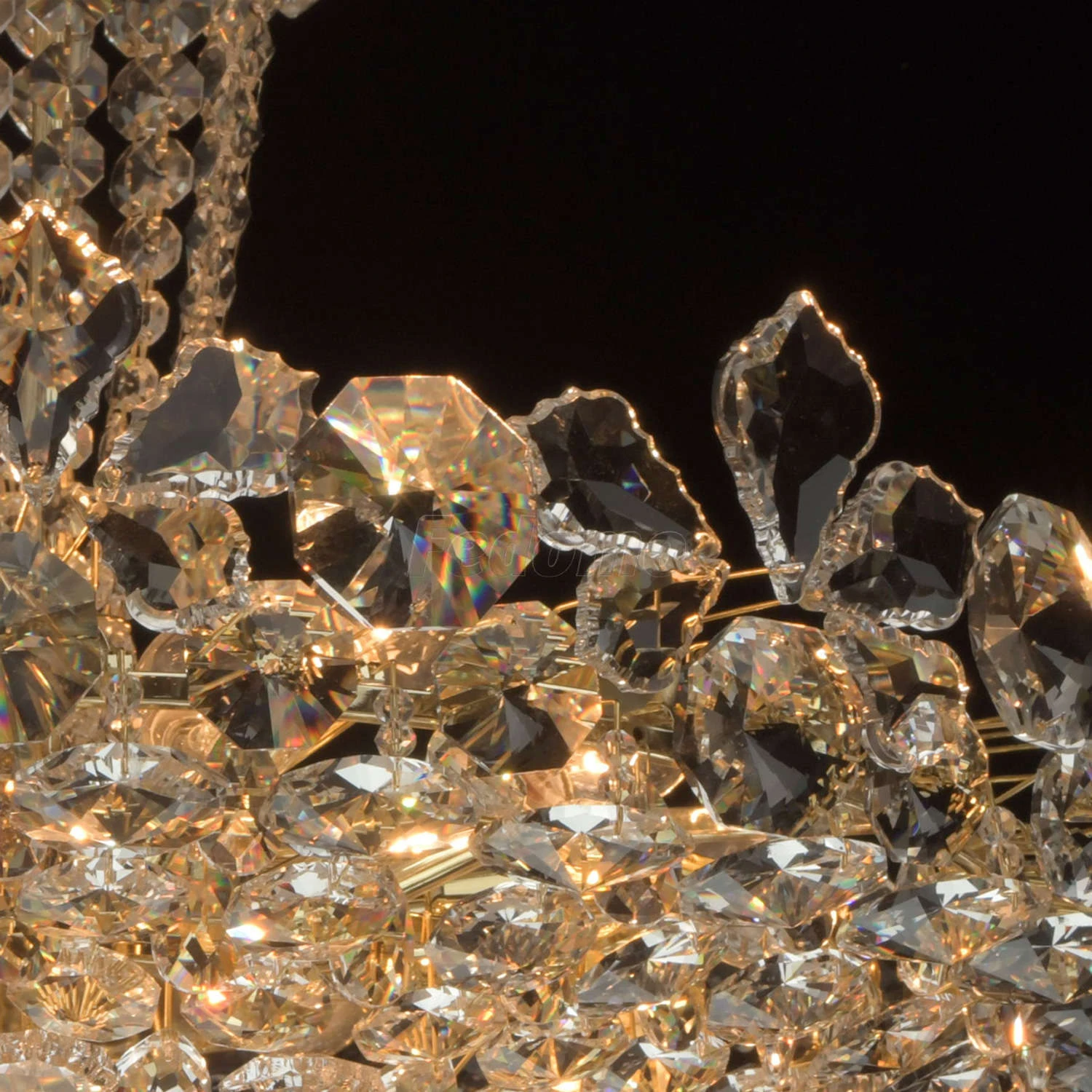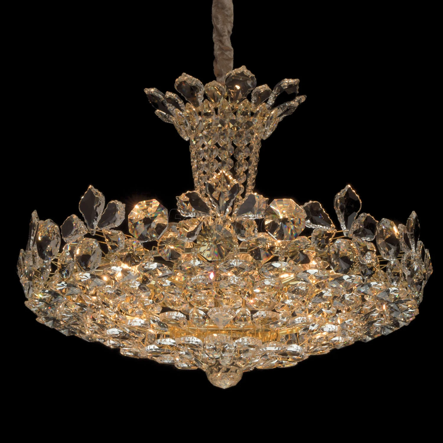 Роскошная люстра из коллекции «Лаура» напоминает великолепный драгоценный цветок. Металлическое основание светильника создает гармоничный дуэт с многоуровневой хрустальной композицией, выполненной в двух вариациях: прозрачной и оттенка шампань. Крупный хр