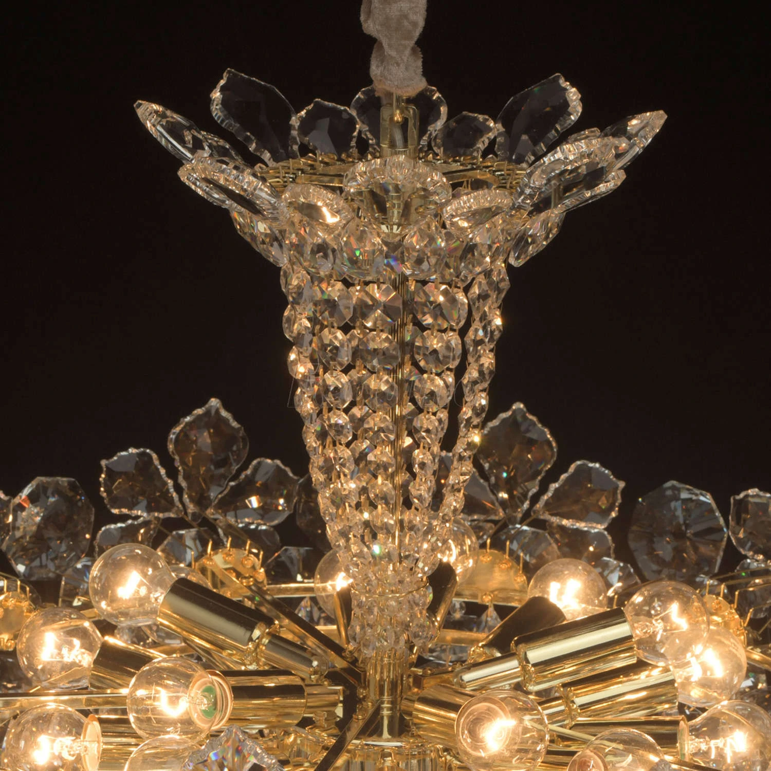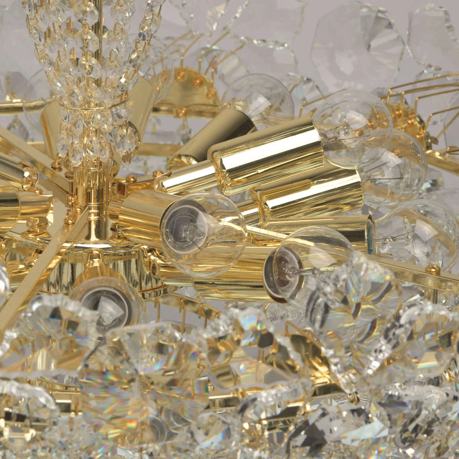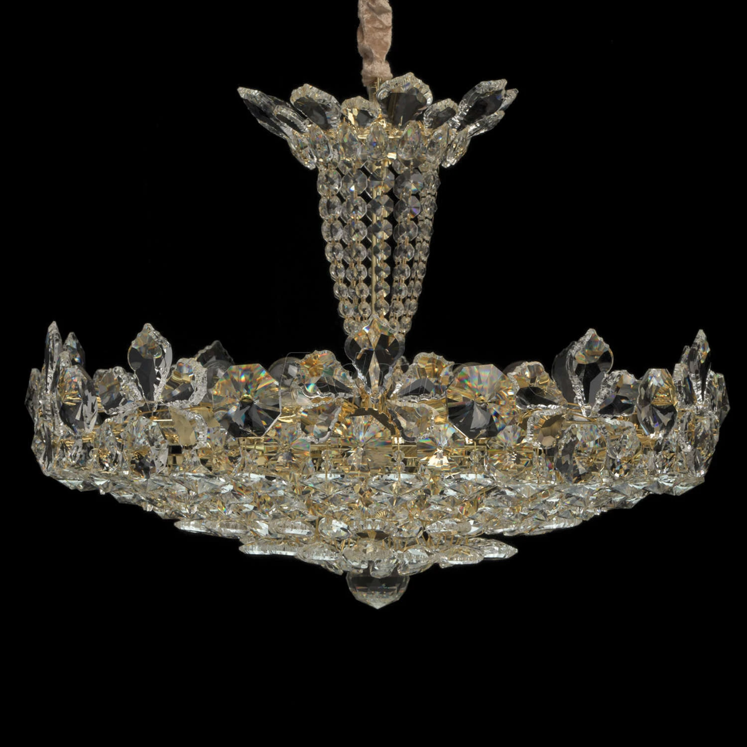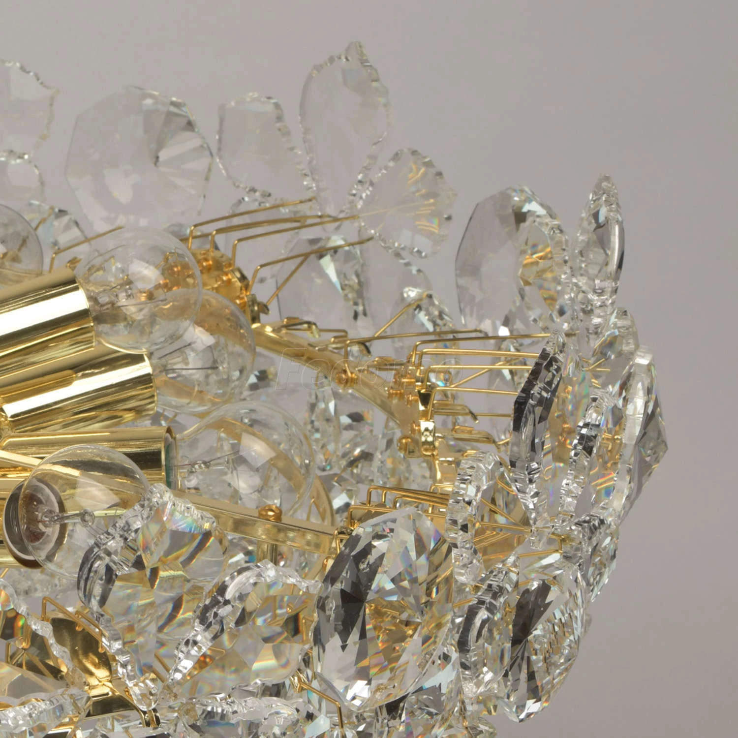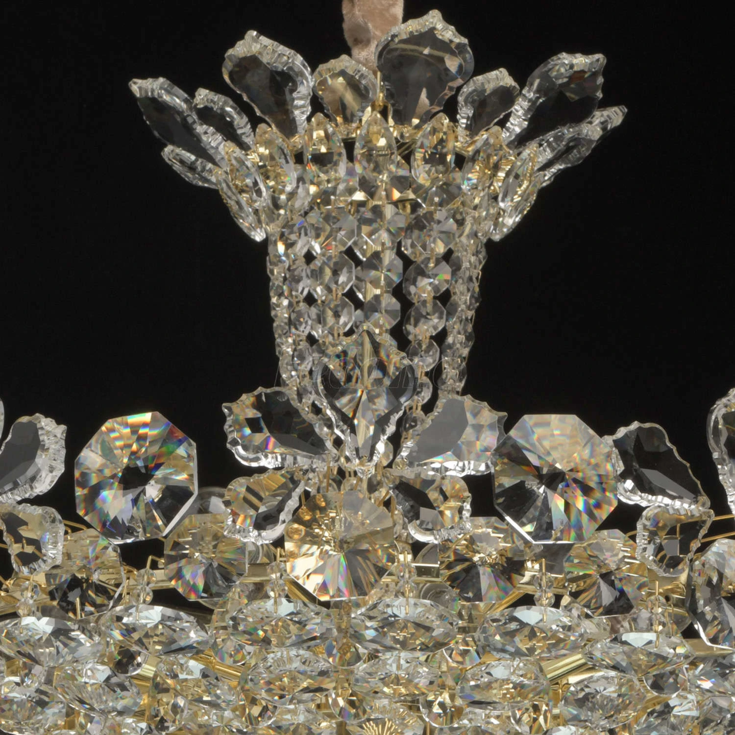 Роскошная люстра из коллекции «Лаура» напоминает великолепный драгоценный цветок. Металлическое основание светильника создает гармоничный дуэт с многоуровневой хрустальной композицией, выполненной в двух вариациях: прозрачной и оттенка шампань. Крупный хр