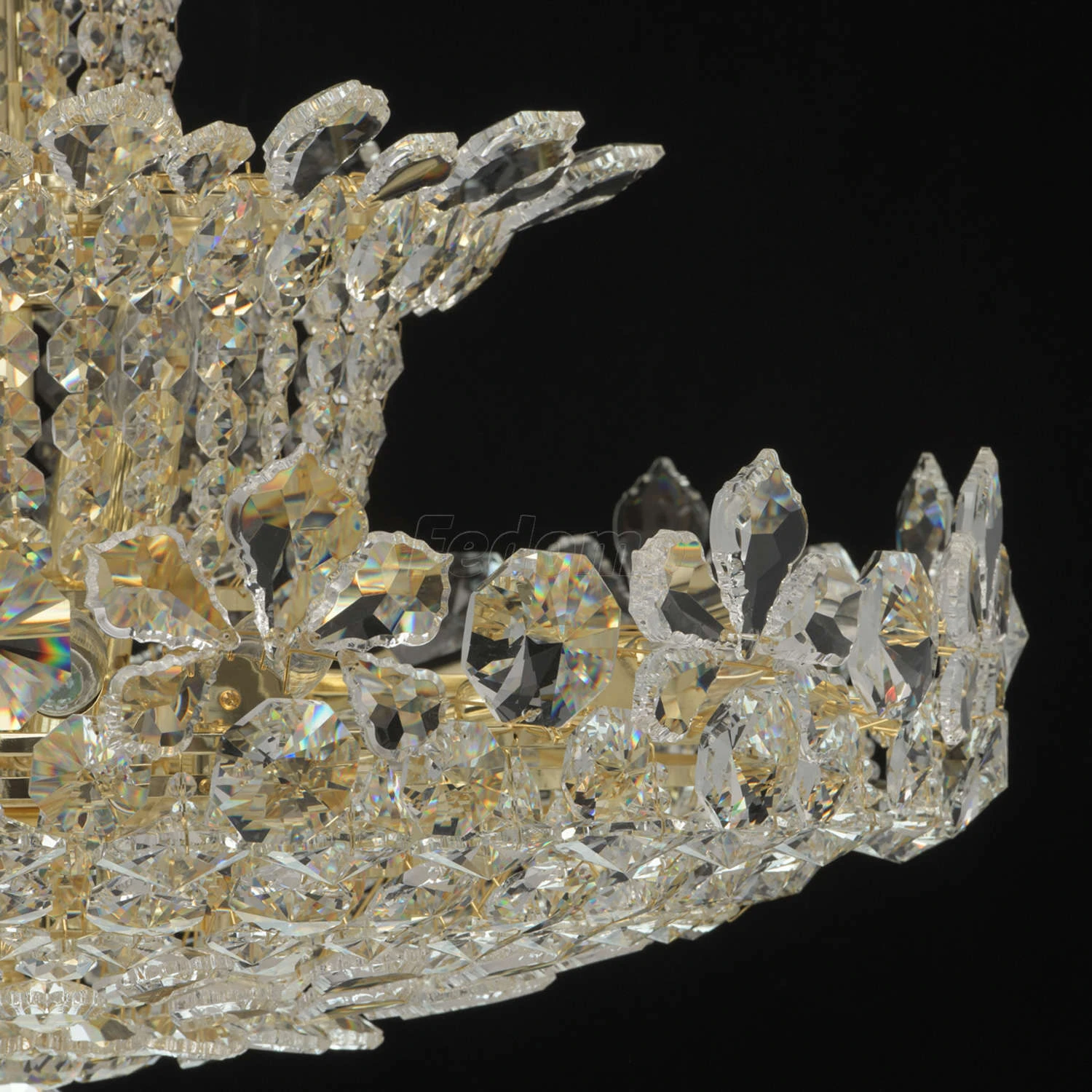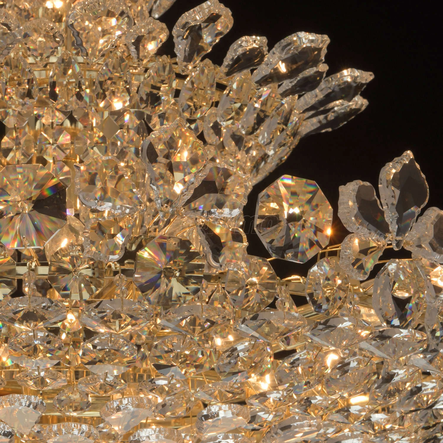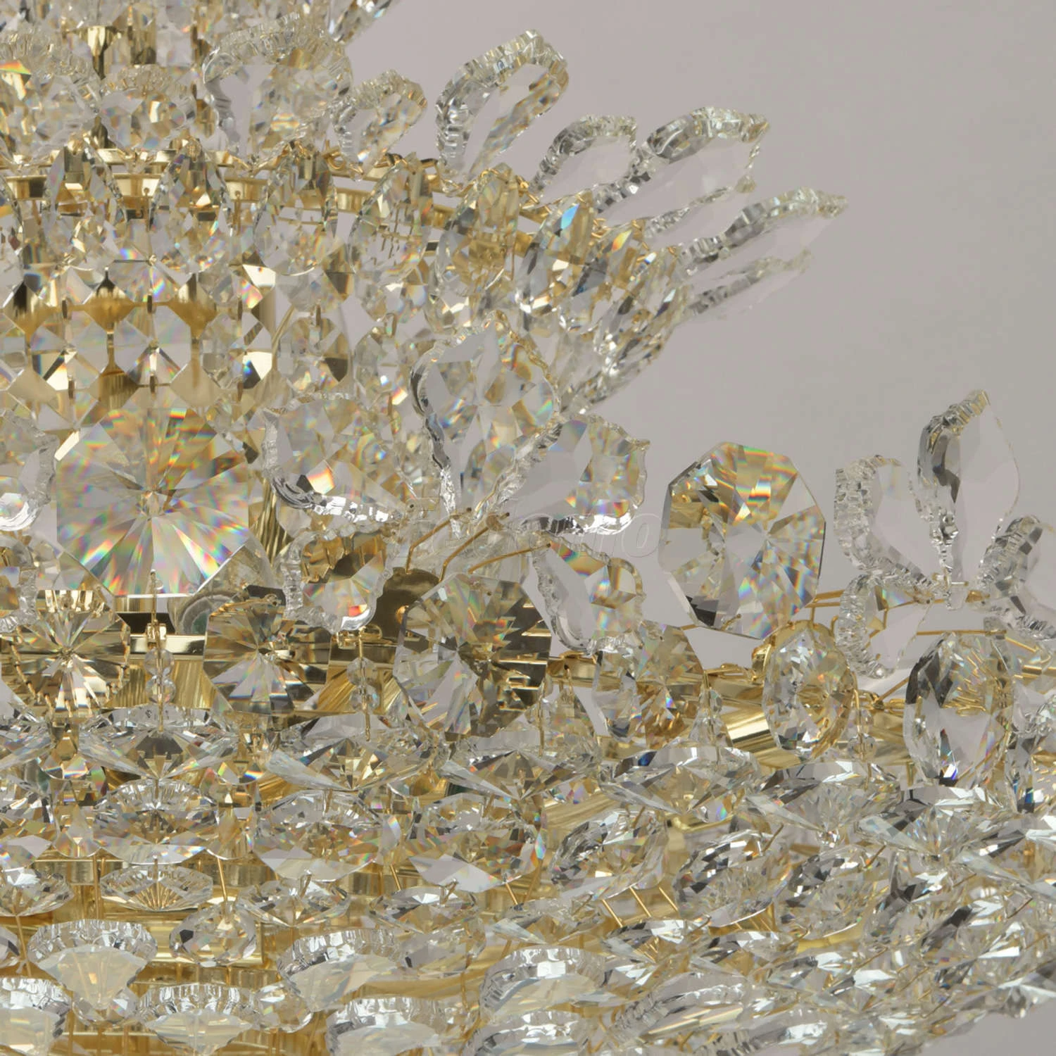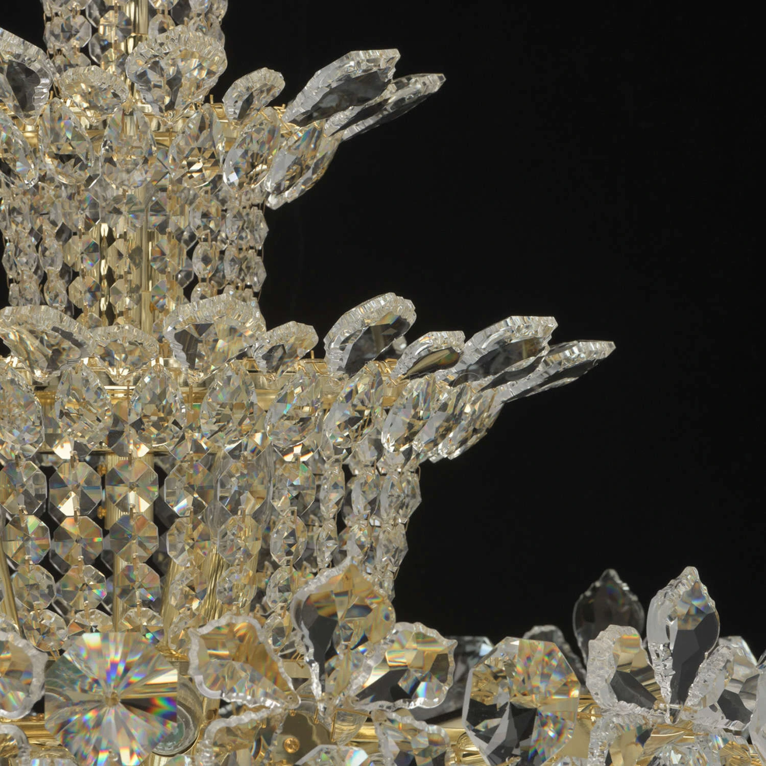 Роскошная люстра из коллекции «Лаура» напоминает великолепный драгоценный цветок. Металлическое основание светильника создает гармоничный дуэт с многоуровневой хрустальной композицией, выполненной в двух вариациях: прозрачной и оттенка шампань. Крупный хр
