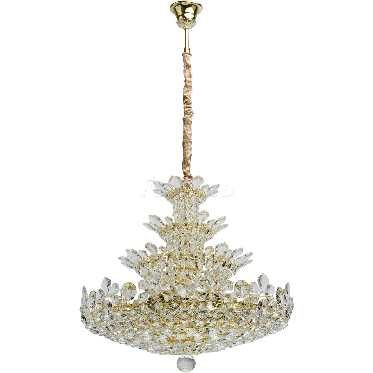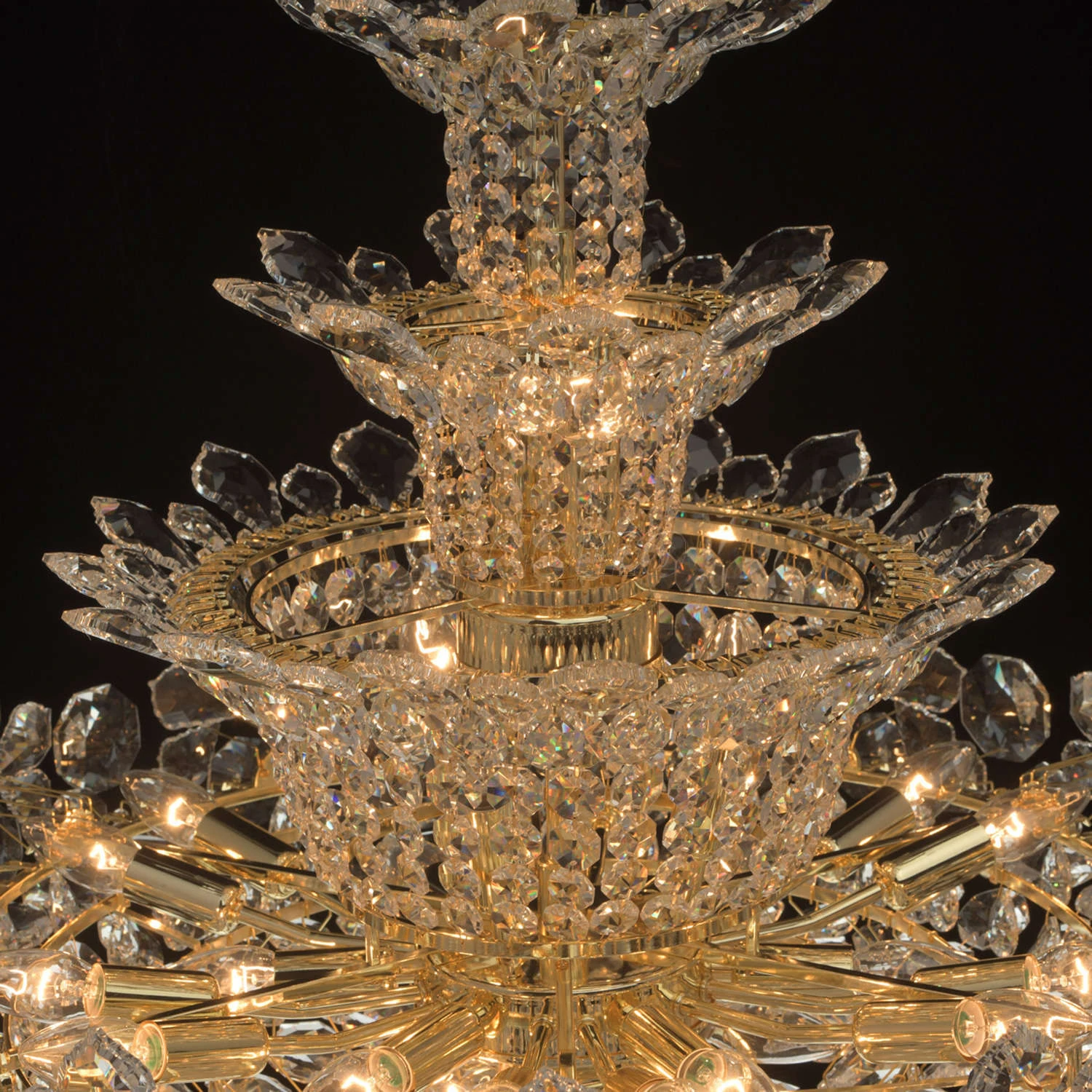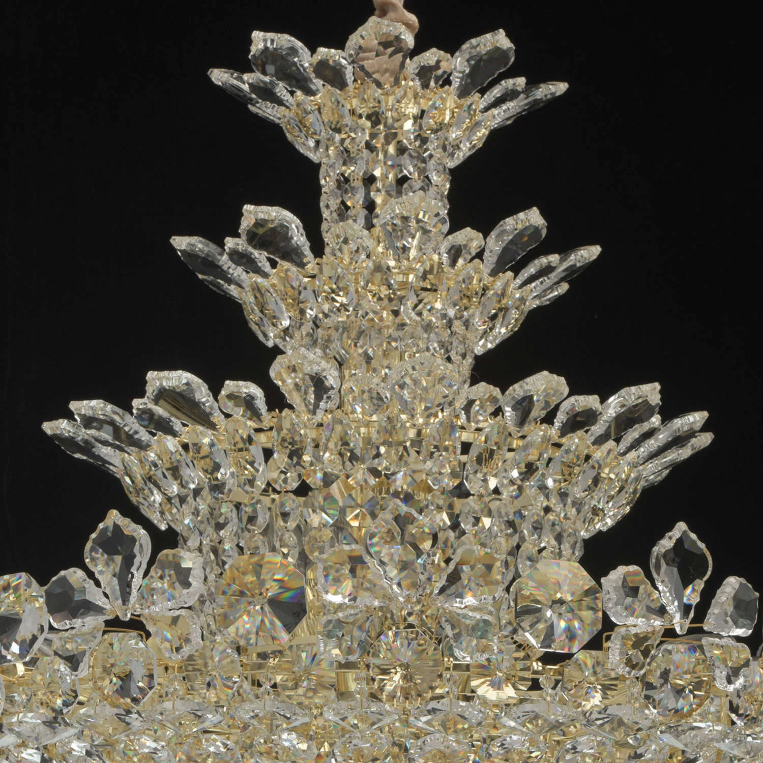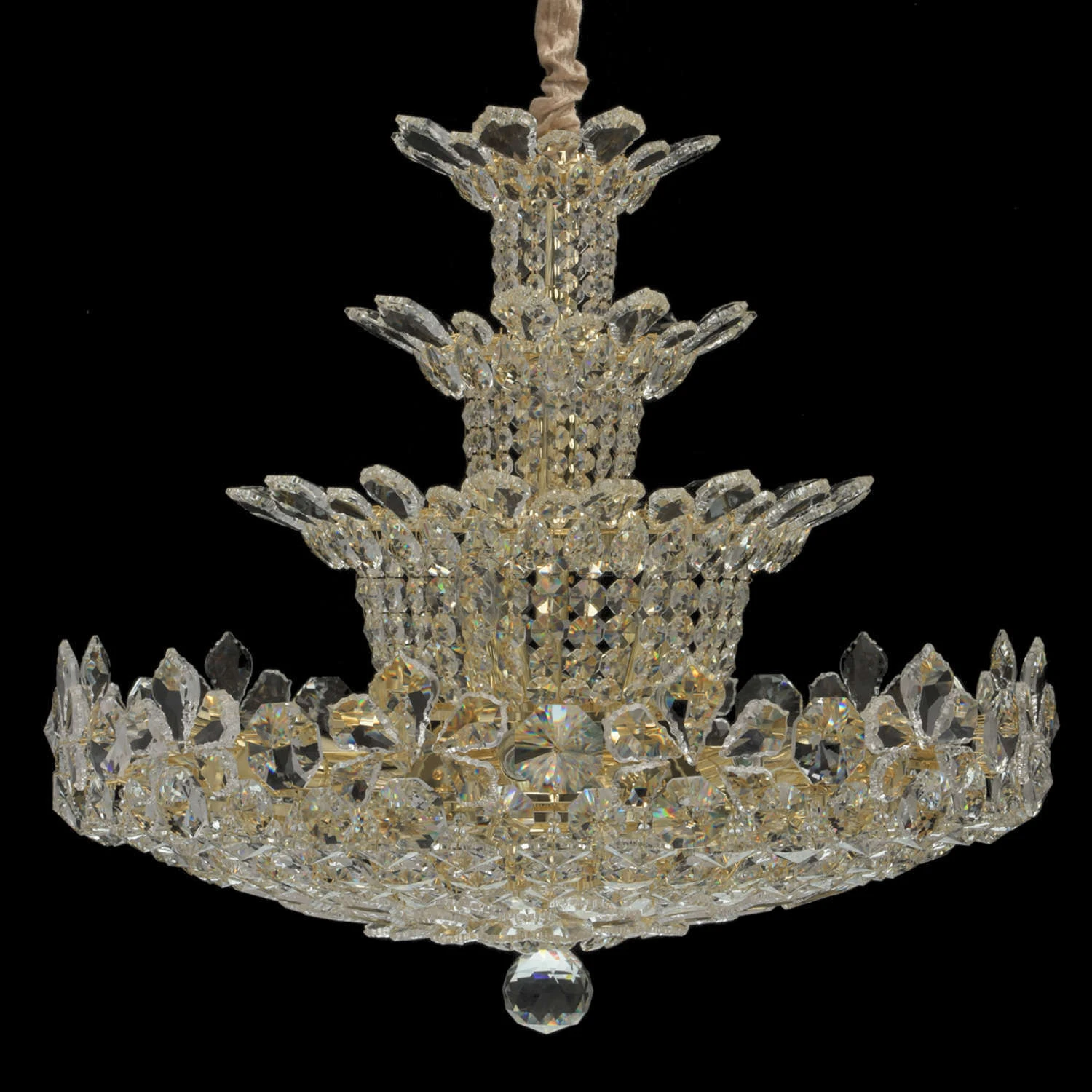 Роскошная люстра из коллекции «Лаура» напоминает великолепный драгоценный цветок. Металлическое основание светильника создает гармоничный дуэт с многоуровневой хрустальной композицией, выполненной в двух вариациях: прозрачной и оттенка шампань. Крупный хр
