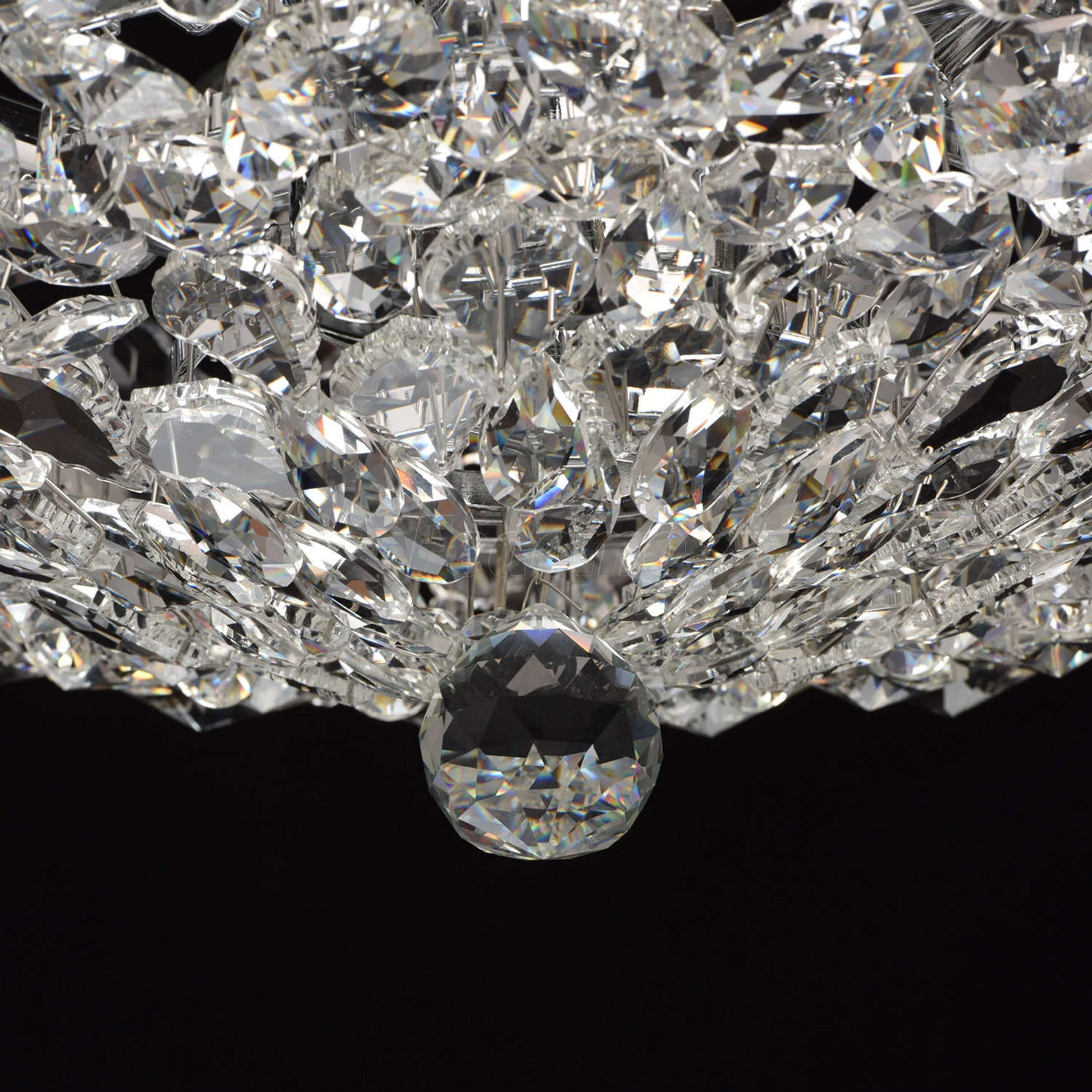 Роскошная люстра из коллекции «Лаура» привлекает стильным гламурным дизайном. Изящное металлическое основание цвета хрома гармонично смотрится в сочетании с богатым декором светильника. Прозрачный хрусталь различной формы огранки создаст неповторимую игру