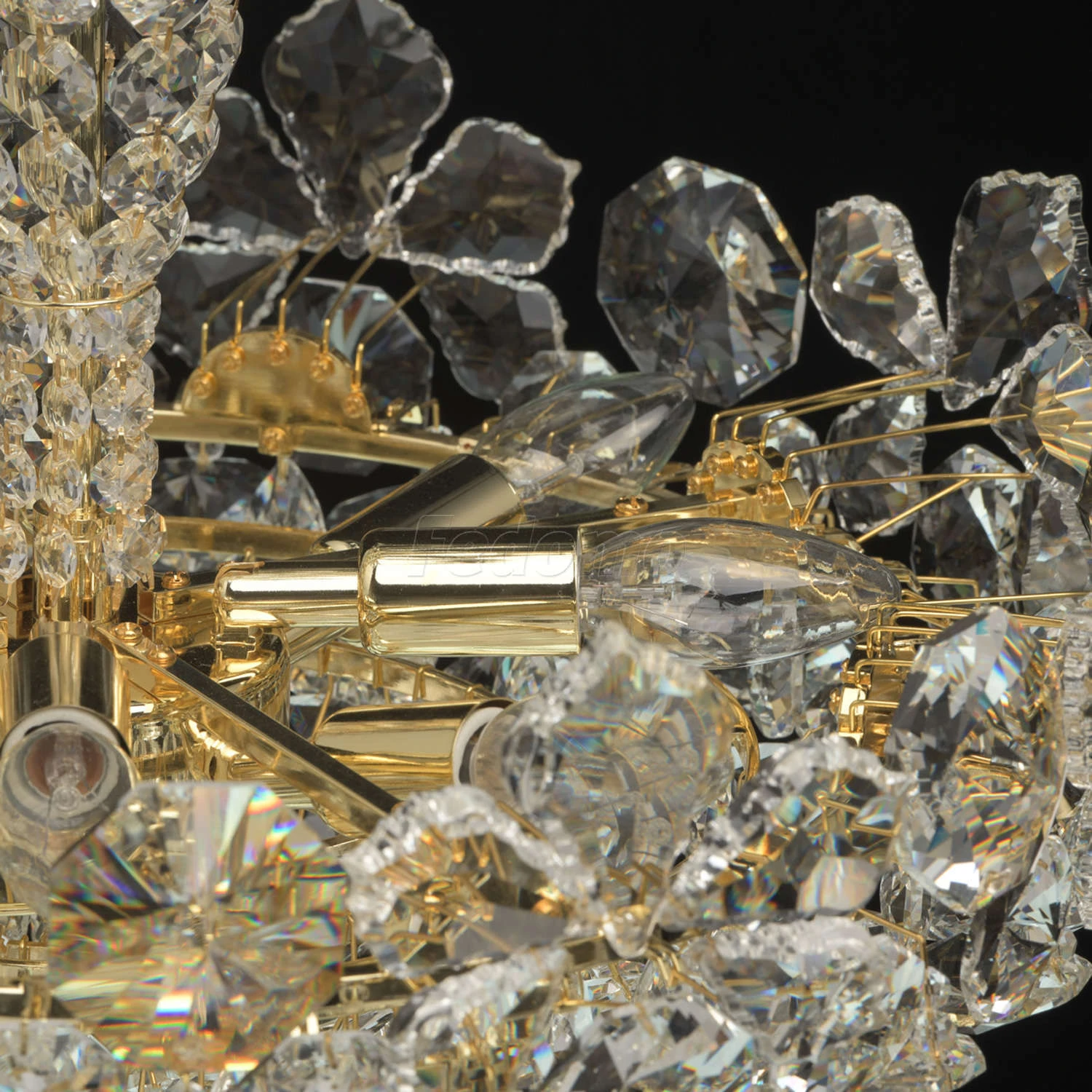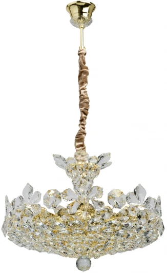 Роскошная люстра из коллекции «Лаура» напоминает великолепный драгоценный цветок. Металлическое основание светильника создает гармоничный дуэт с многоуровневой хрустальной композицией, выполненной в двух вариациях: прозрачной и оттенка шампань. Крупный хр