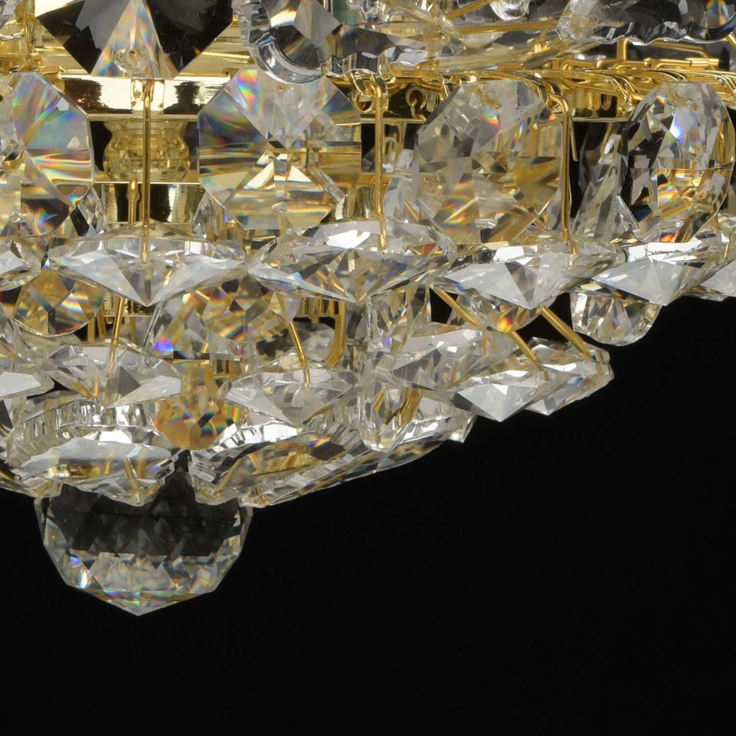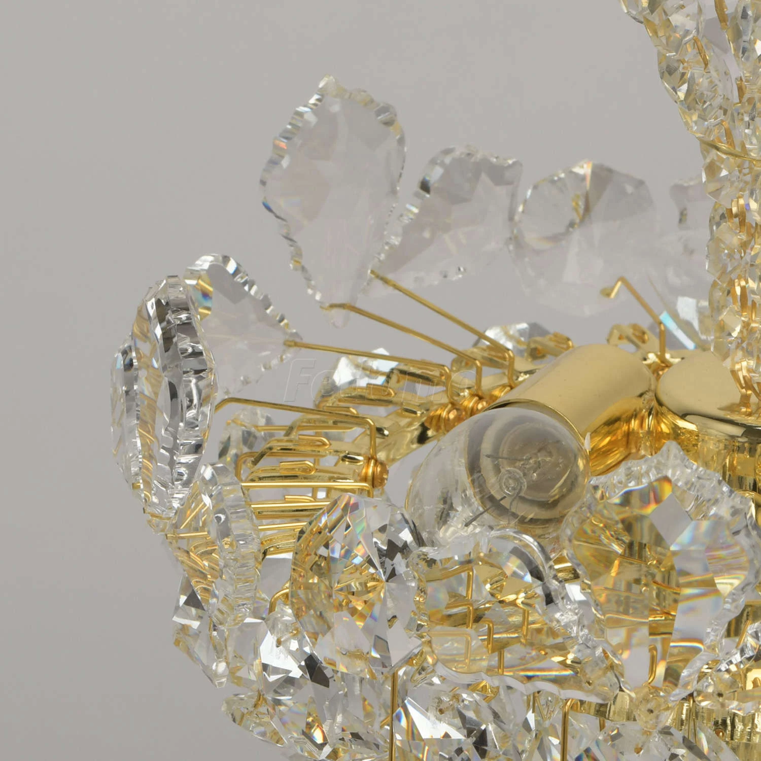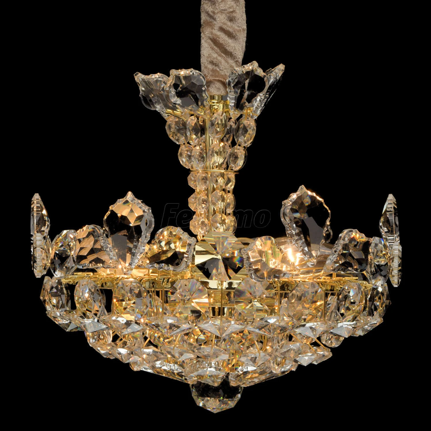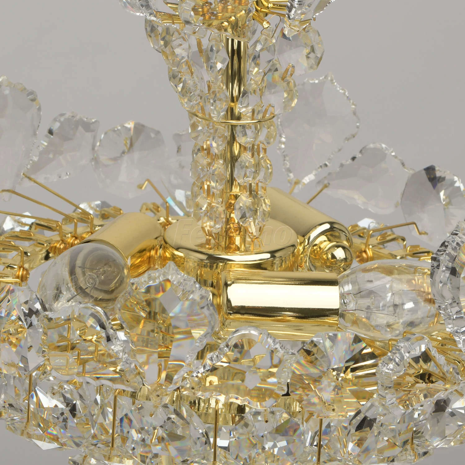 Роскошная люстра из коллекции «Лаура» напоминает великолепный драгоценный цветок. Металлическое основание светильника создает гармоничный дуэт с многоуровневой хрустальной композицией, выполненной в двух вариациях: прозрачной и оттенка шампань. Крупный хр