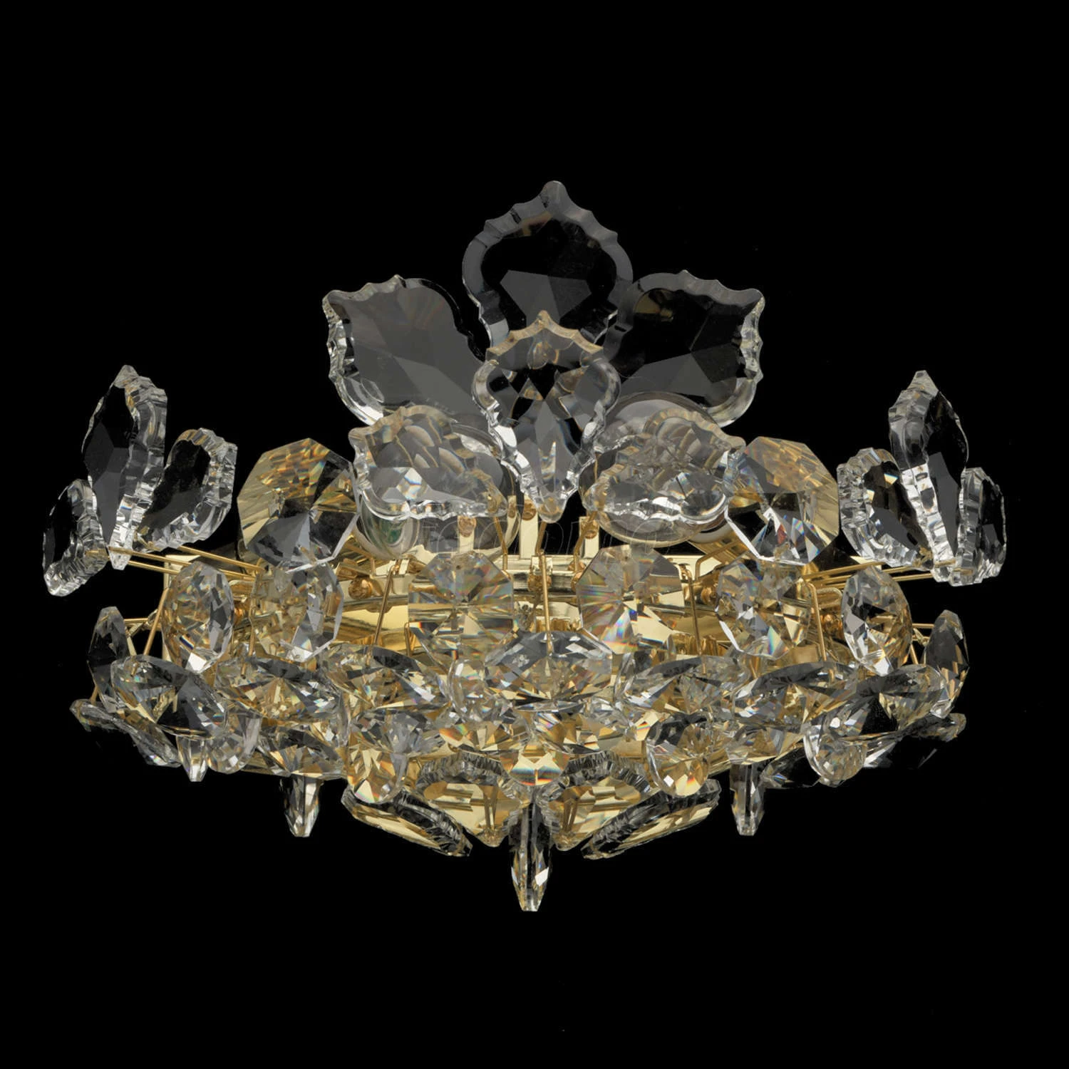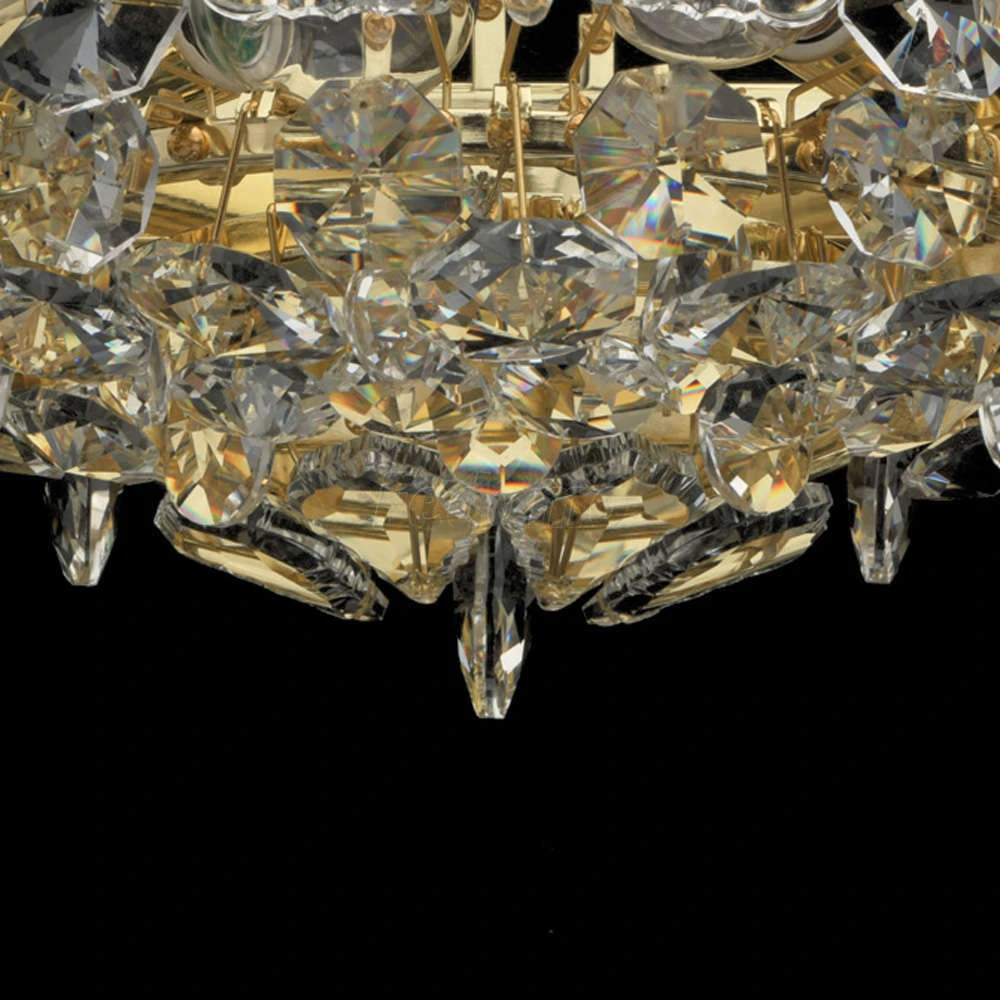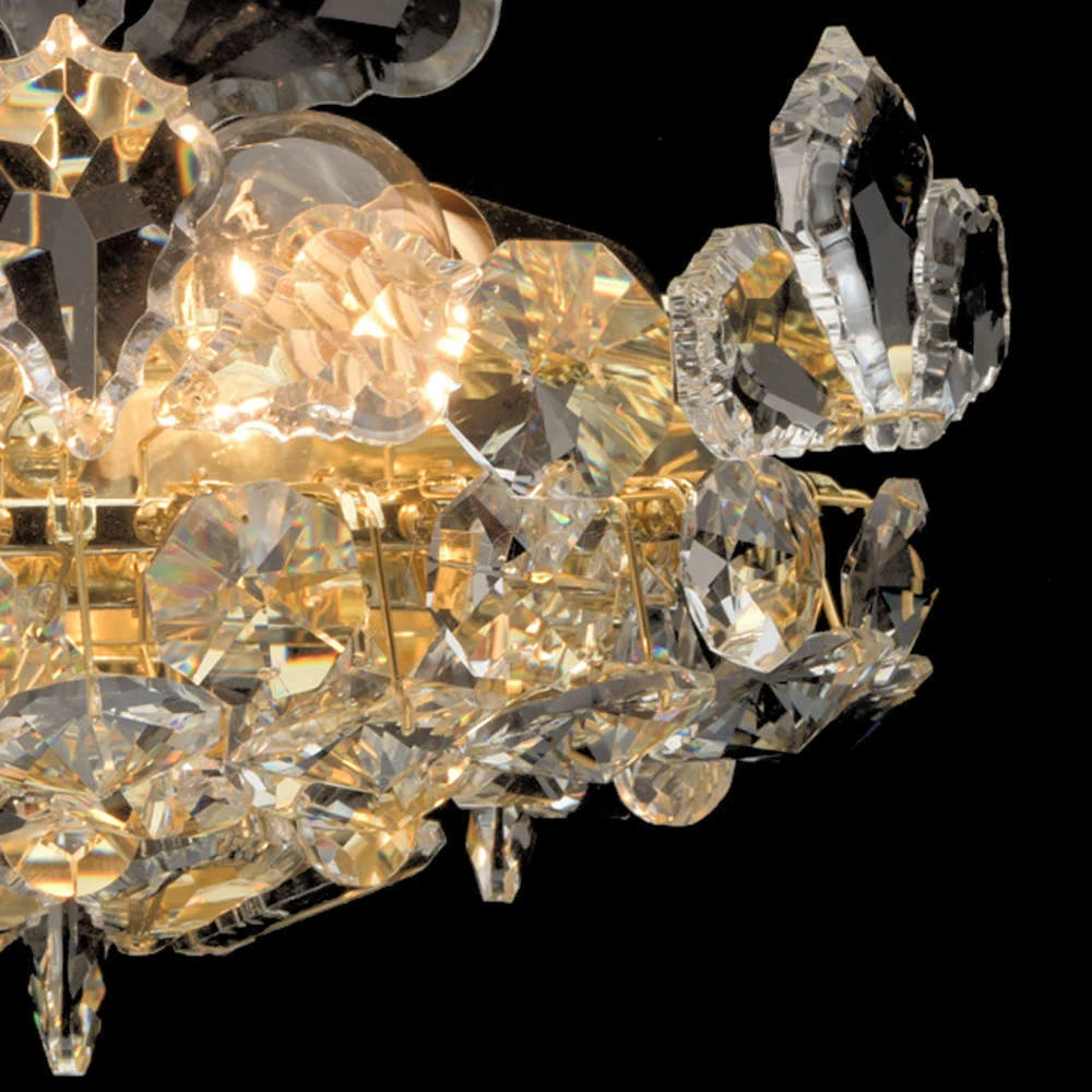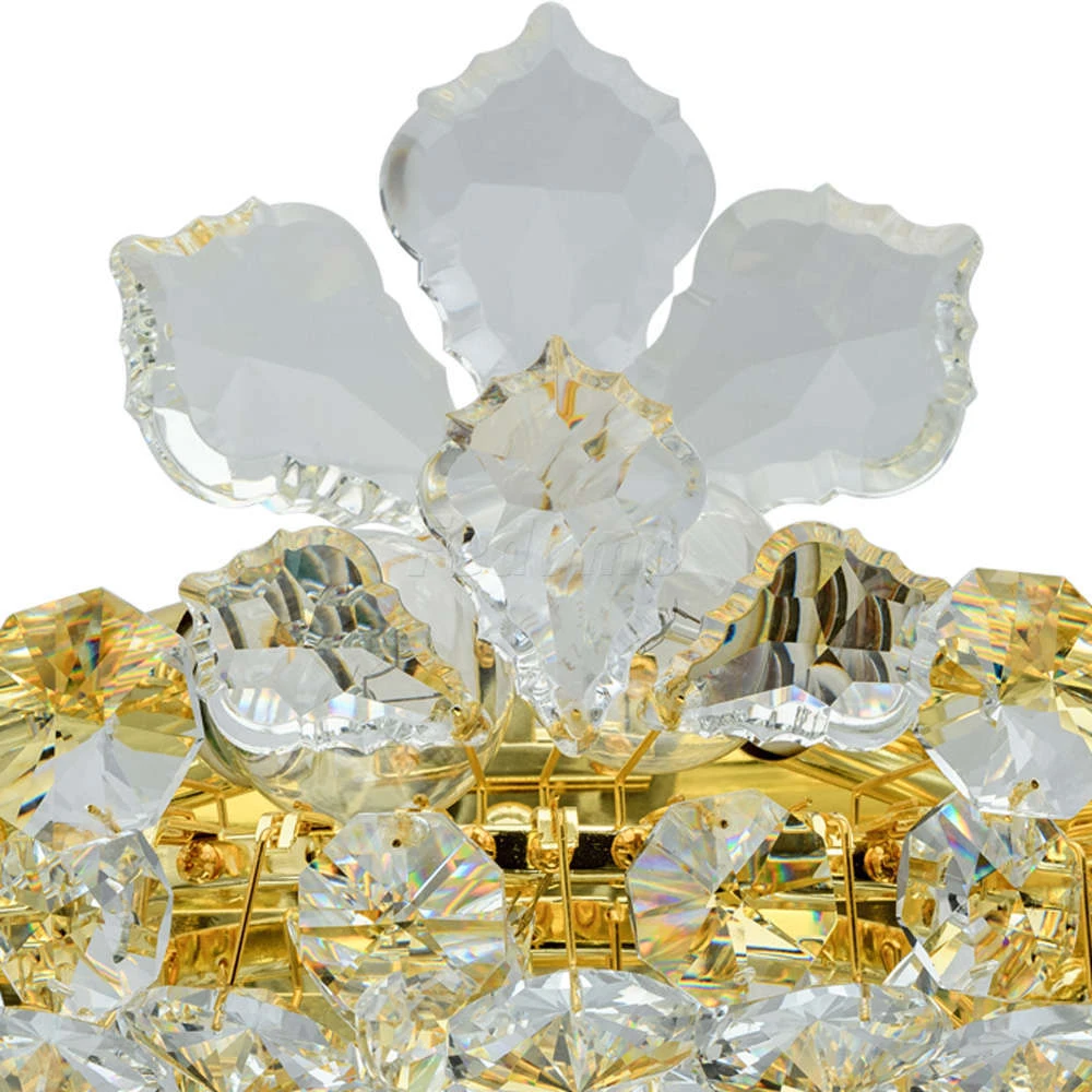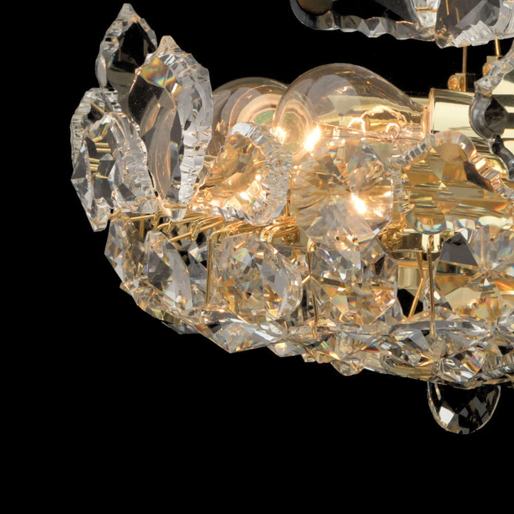 Роскошная люстра из коллекции «Лаура» напоминает великолепный драгоценный цветок. Металлическое основание светильника создает гармоничный дуэт с многоуровневой хрустальной композицией, выполненной в двух вариациях: прозрачной и оттенка шампань. Крупный хр
