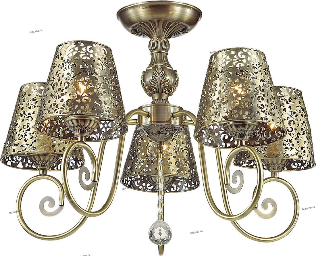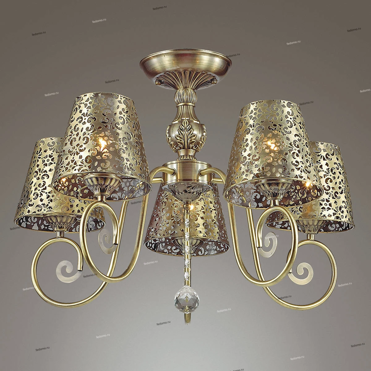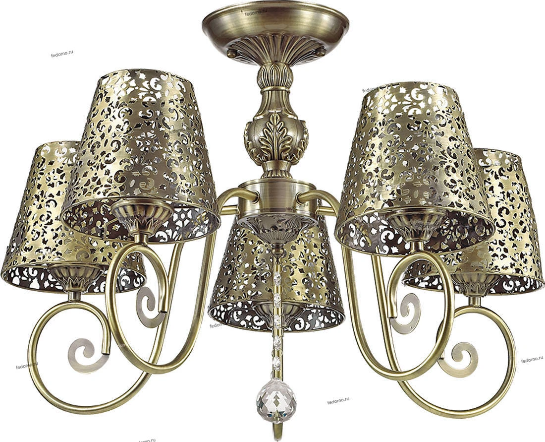 Люстра потолочная 3466/5C из серии Izidora от компании Lumion устанавливается на монтажную пластину. Классическая люстра украшена хрусталем и прекрасно подойдет в качестве источника основного света для гостиной, прихожей и коридора, кухни, оформленных в стиле арт-деко. Основной цвет модели - бронза, материал арматуры - металл. Люстра имеет 5 абажуров со свечением вверх, материал изготовления - металл. Модель оснащена цоколем E14 (5xE14), имеет 5 лампочек с общей мощностью 300W и напряжением 220V. Светильник поддерживает подключение диммера. Габариты: длина - 590 мм, ширина - 590 мм, высота - 430 мм. Лампочки в комплект не входят. Лучшая цена и условия доставки на Lumion 3466/5C в интернет-магазине Fedomo.ru.