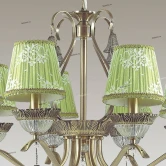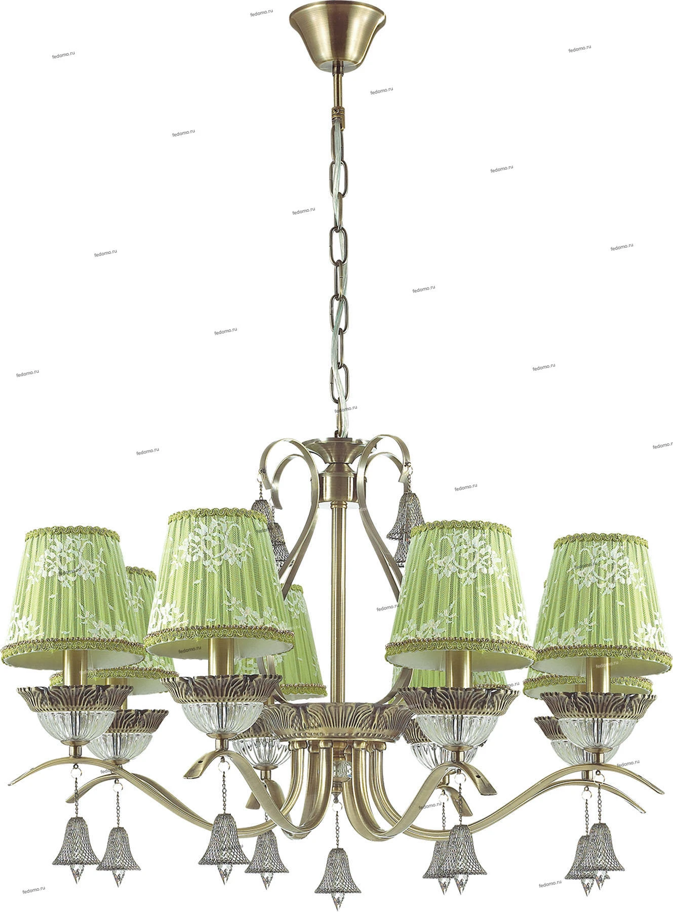 Материалы исполнения арматура, декор: металл, абажур ткань. Цвет арматуры бронзовый. Плафон в цвете: зеленый. Декор подвеска, материал декора хрусталь, цвет бронзовый. Люстра 3474/8 серии Klimenta выполнена в классическом стиле. Арматуру из металла цвета бронза украшают декоративные металлические розетки, рельефные стеклянные чаши и миниатюрные колокольчики из тонкой сеточки с хрустальной подвеской. Абажур выполнен из нежной плиссированной ткани яркого фисташкового цвета, покрытой тонким белым кружевом. Фисташковый цвет станет отличным дополнением интерьера в любом стиле и будет сочетаться с различными цветами и оттенками - от натуральных пастельных тонов до ярких, контрастных и красочных оттенков. Цоколь E14. Мощность 8*40W. Нет ламп в комплекте. Наименование 3474/8 ODL17 391 бронзовый/абажур ткань/декор подвески Люстра E14 8*40W 220V KLIMENTA.