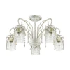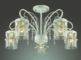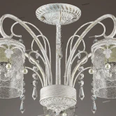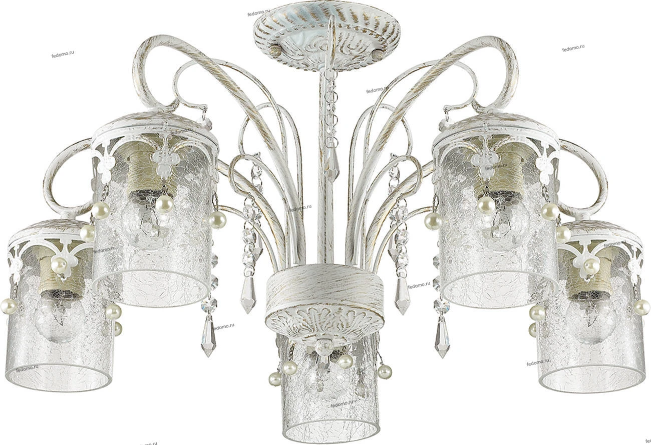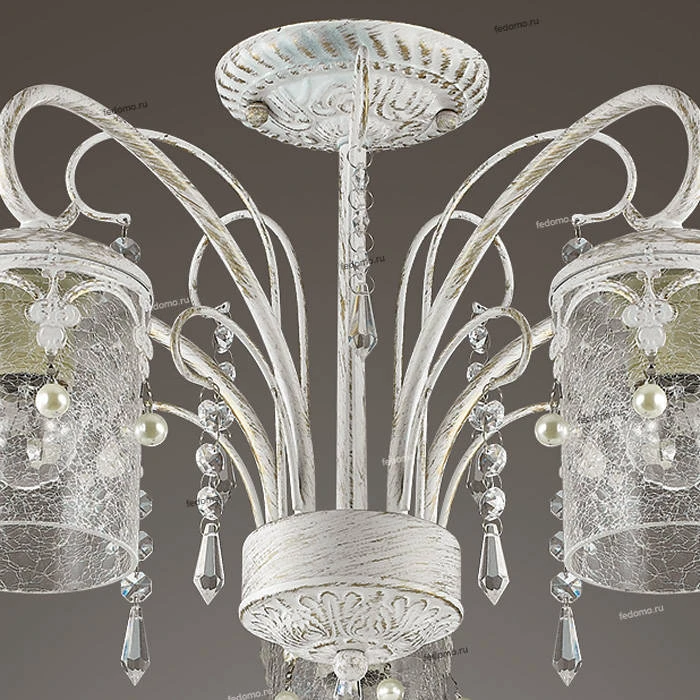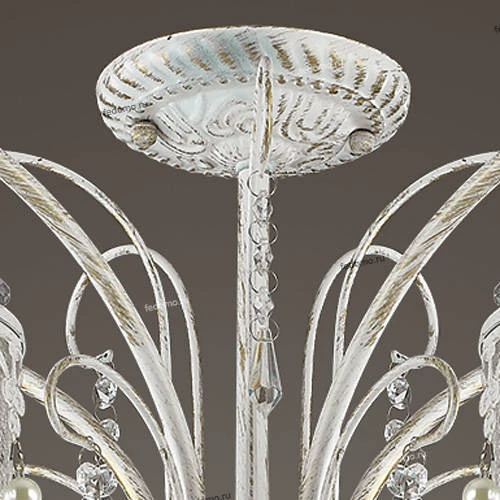 Материалы исполнения арматура, декор: металл, хрусталь; плафон: стекло, жемчуг, металл. Цвет арматуры белый. Плафон в цвете: прозрачный. Декор подвеска, материал декора хрусталь, жемчуг, цвет прозрачный. Элегантная, легкая серия Tibo в белом цвете с золотой патиной будет смотреться изящно и стильно в любом интерьере. Металлические декоры в готическом стиле в сочетании с толстым стеклом создают атмосферу легкости и торжественности. Наименование 3481/5C LN17 198 белый/зол.патина/стекло/хрусталь Люстра потолочная E27 5*60W 220V TIBO.