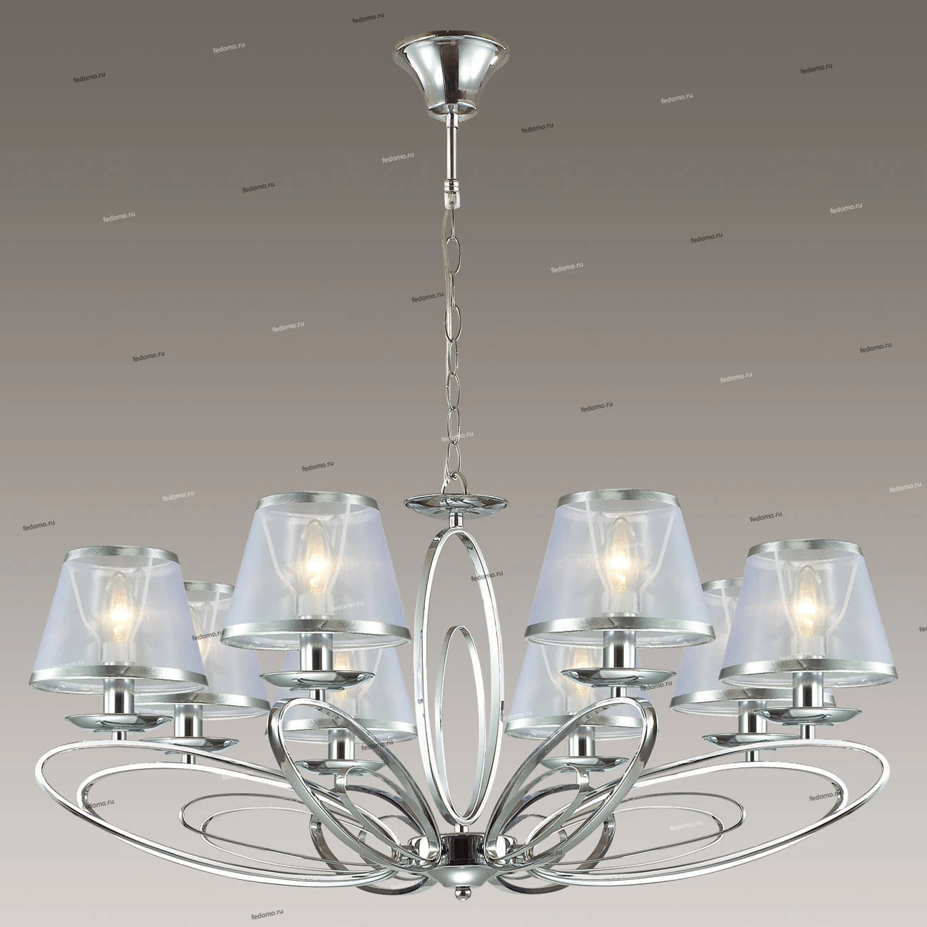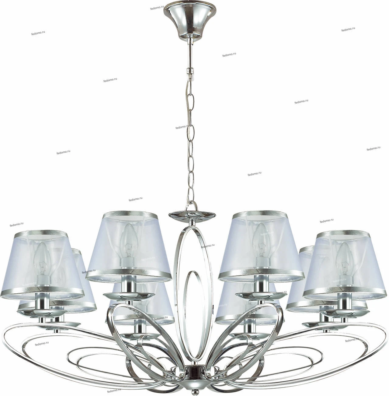 Материалы исполнения арматура, декор: металл; абажур: ткань. Цвет арматуры хром. Плафон в цвете: прозрачный. Декор декоративная арматура, материал декора металл, цвет хром. Серия Nubbiana смотрится очень изящно, элегантно и легко. Металлическое основание светильника выполнено в виде вытянутых колец и украшено легкими, прозрачными абажурами, создающими эффект невесомости. Наименование 3503/8 LN18 147 хром Люстра E14 8*40W 220V NUBBIANA.