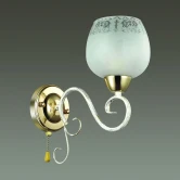 Материалы исполнения арматура, декор: металл; плафон: стекло. Цвет арматуры белый. Плафон в цвете: белый. Особенность: для использования со скрытой проводкой, диаметр основания 105 мм, размер плафона 128x115 мм. Романтичная серия Biancopa поражает своей красотой и изяществом. Арматура светильника покрыта белым цветом с золотой патиной. Светильник обильно украшен металлическим декором, а также белоснежными плафонами с эффектом зимнего узора на стекле. Наименование 3505/1W LN18 169 белый/зол.патина/золото Бра E27 60W 220V BIANCOPA.