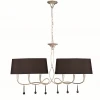Люстра подвесная 3531 из серии Paola от компании Mantra регулируется по высоте и устанавливается на металлический крюк. Люстра прекрасно подойдет в качестве источника основного света для гостиной, прихожей и коридора, оформленных в стиле модерн, арт-деко. Основной цвет модели - черный, материал арматуры - металл. Люстра имеет 2 абажура со свечением вверх, материал изготовления - матовое стекло, ткань. Модель оснащена цоколем E14 (6xE14), имеет 6 лампочек с общей мощностью 240W и напряжением 220V. Светильник поддерживает подключение диммера. Габариты: длина - 1000 мм, высота - 1180 мм. Лампочки в комплект не входят. Лучшая цена и условия доставки на Mantra 3531 в интернет-магазине Fedomo.ru.