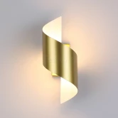 Материалы исполнения арматура, декор: металл. Цвет арматуры золото. Плафон в цвете: золото. Светодиодный светильник Boccolo благодаря своей изящно изогнутой форме рассеивает мягкий комфортный свет 3000К в двух направлениях - вверх и вниз, что создает эффектную игру теней и бликов на металлической поверхности светильника. Светильник может быть в трех цветовых решениях: белом, черном, золотистом и серебристом цветах. Наименование 3544/5LW ODL18 105 золотистый Настенный светильник IP20 LED 3000K 5W 500Лм 220V BOCCOLO.