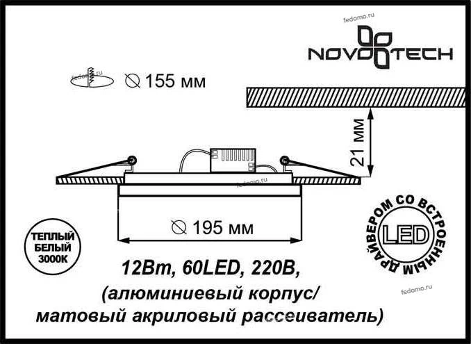 Точечный светильник встроенный 357264 из серии Peili от компании Novotech удачно впишется в интерьер кафе, кухни, оформленных в классическом стиле. Светодиодный светильник имеет 1 плафон и 60 светодиодов напряжением 220V, цветовой температурой 3000К и теплое белое свечение. Светильник устанавливается на распорную пружину. Основной цвет и материал арматуры - золотистый металл, материал плафона - акрил. Габариты модели: высота - 25 мм, диаметр - 195 мм. Лучшая цена и условия доставки на Novotech 357264 в интернет-магазине Fedomo.ru.