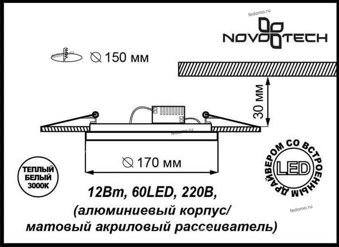 Точечный светильник встроенный 357295 из серии Lante от компании Novotech удачно впишется в интерьер кафе, кухни, оформленных в стиле классический, минимализм. Светодиодный светильник имеет 1 плафон и 60 светодиодов напряжением 220V, цветовой температурой 3000К и теплое белое свечение. Светильник устанавливается на распорную пружину. Основной цвет и материал арматуры - коричневый металл, материал плафона - акрил. Габариты модели: высота - 22 мм, диаметр - 170 мм. Лучшая цена и условия доставки на Novotech 357295 в интернет-магазине Fedomo.ru.