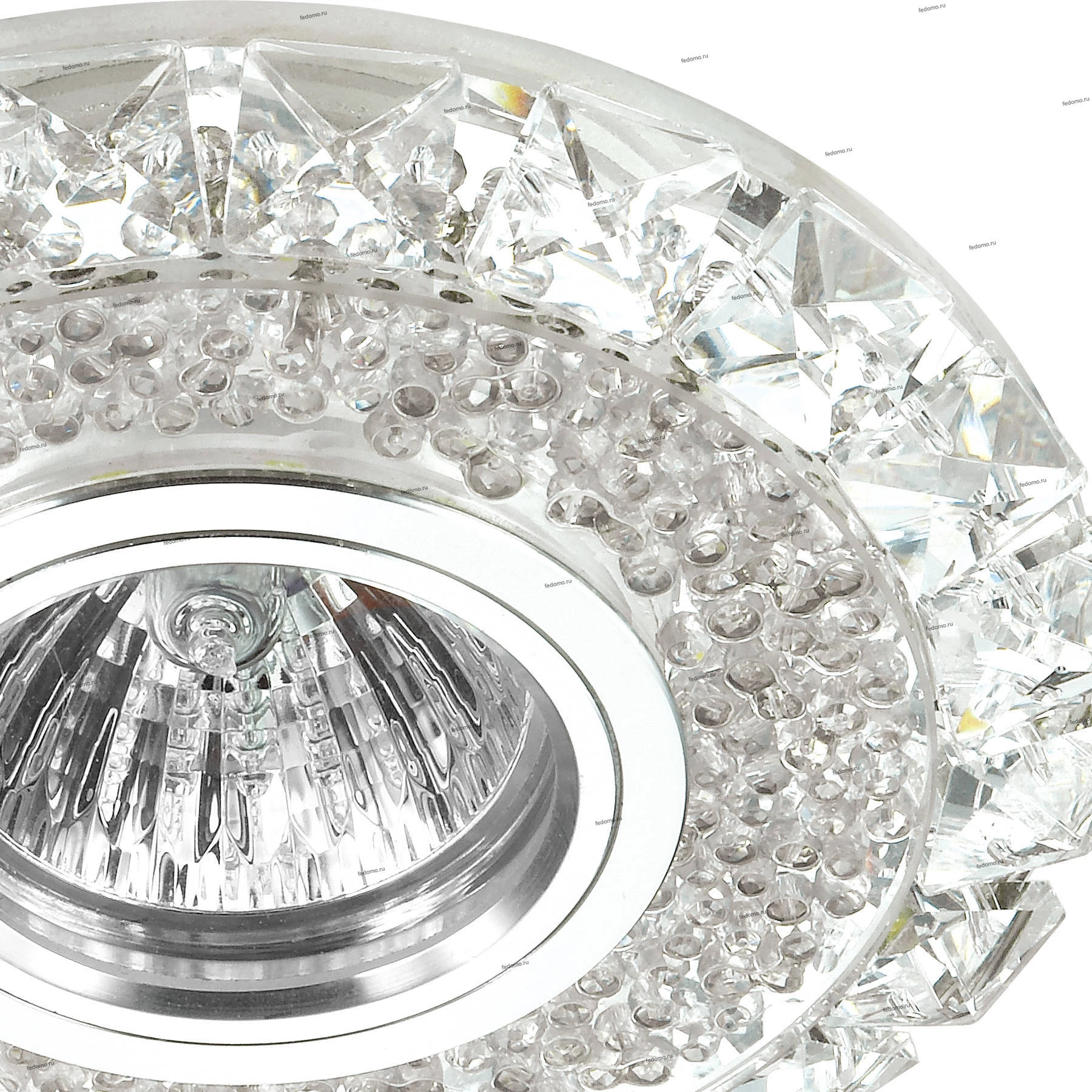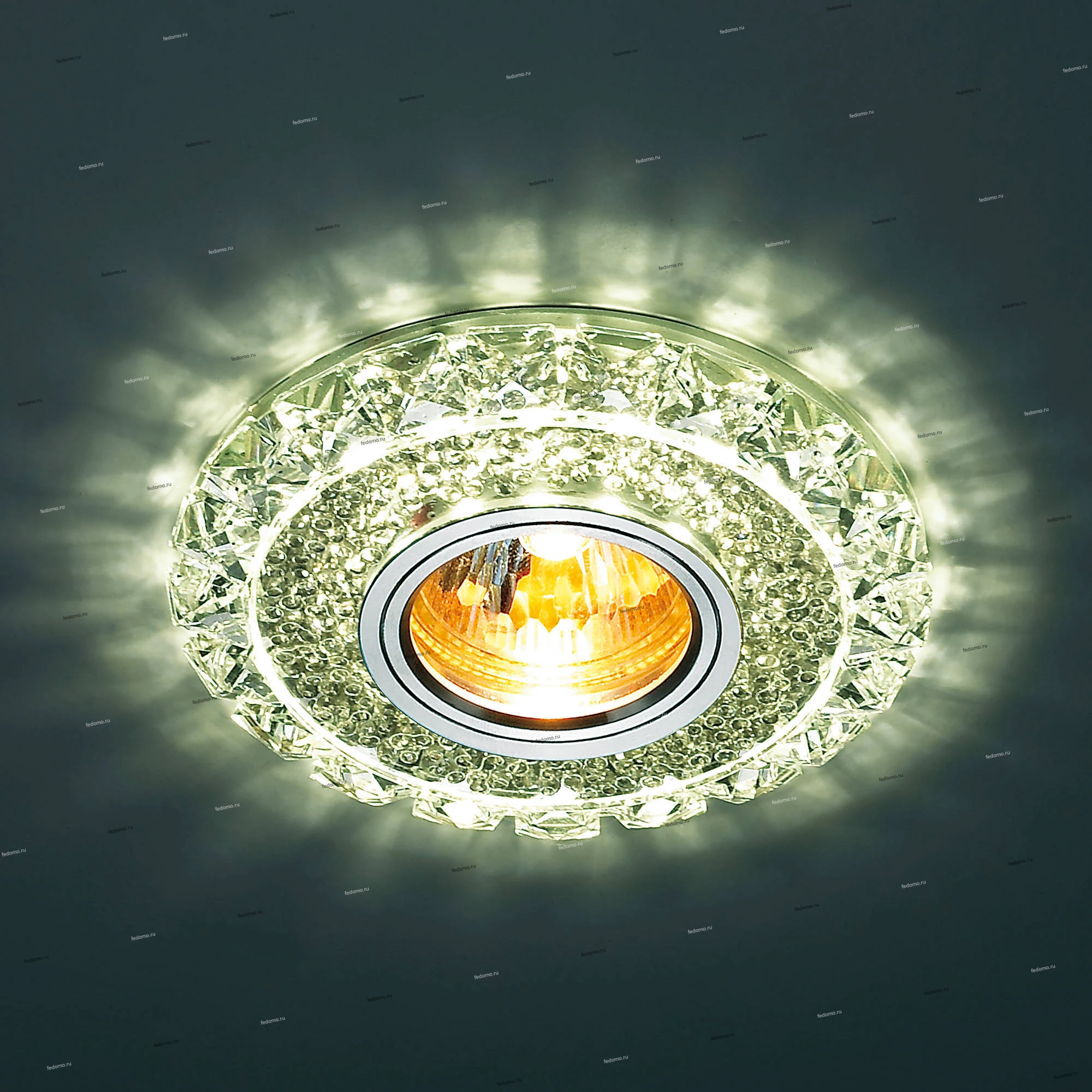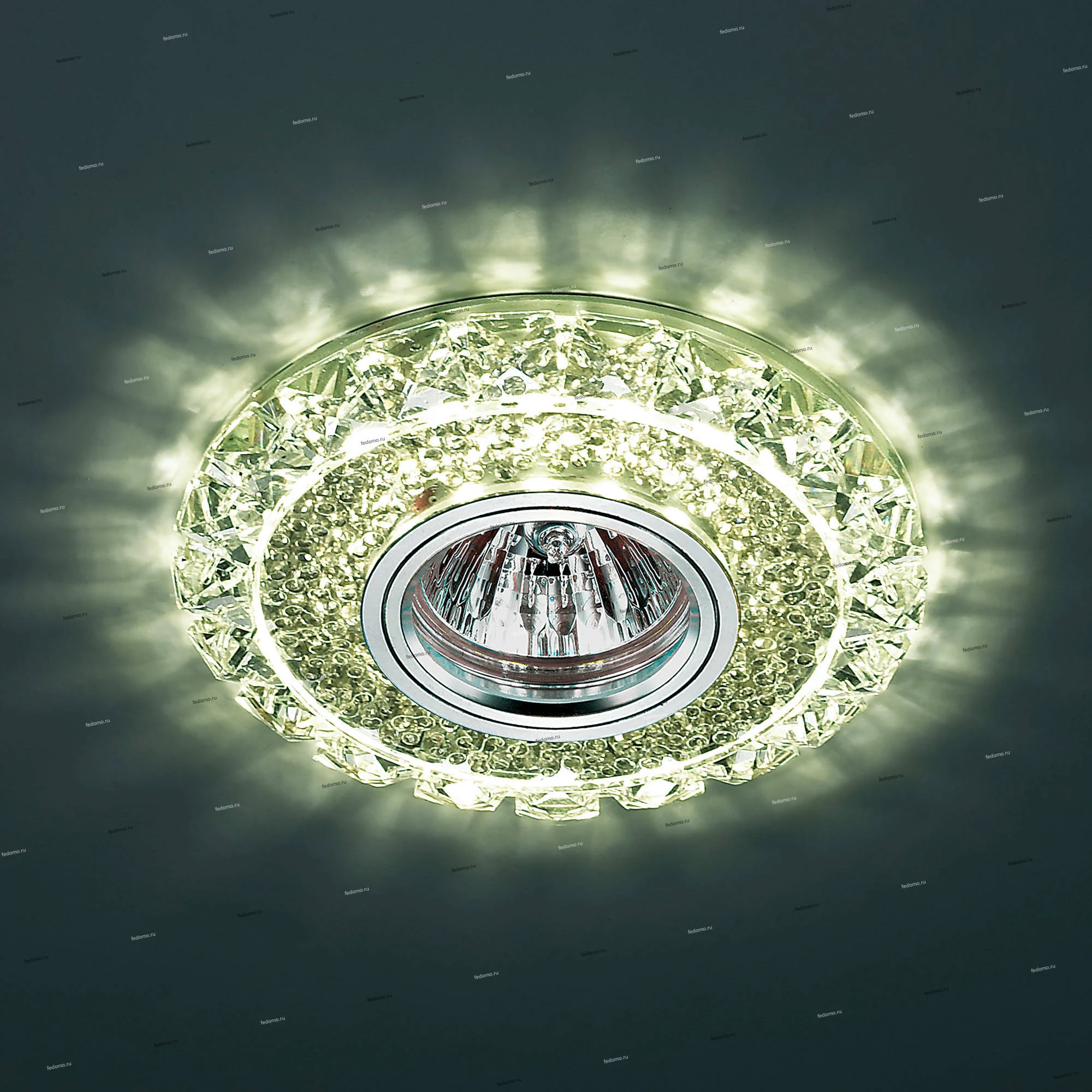 Материалы исполнения хрусталь/стекло/алюминий. Цвет арматуры прозрачный. Плафон в цвете: прозрачный. Декоративное украшение произведено из хрусталя. Хрусталь обладает высоким показателем плотности, прозрачности и блеска. Благодаря содержанию свинца (не менее 30%). Хрусталь обладает высоким показателем плотности, прозрачности и блеска. Благодаря содержанию свинца (не менее 30%) и определённому подбору углов, образуемых гранями, изделия из хрусталя отличаются необыкновенно яркой, многоцветной игрой света, чарующей магией красоты, совершенства и роскоши. Имееется возможность раздельного включения LED и лампы, при использовании двухклавишного выключателя света. Наименование 357307 NT16 425 Встраиваемый светильник с LED подсветкой (без лампы) IP20 GX5.3 RIVA.