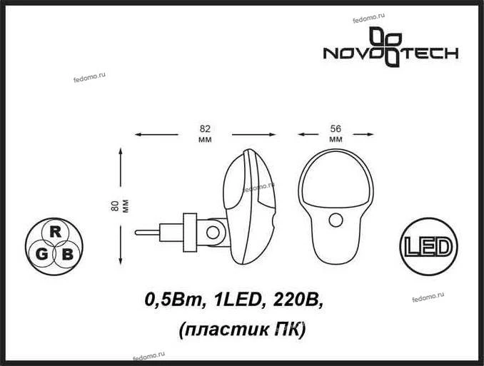 Материалы исполнения пластик поликарбонат. Цвет арматуры серебро. Плафон в цвете: белый. Корпус светильника сделан из пластика ПК. Преимуществами данного материала являются: 1. Химическая инертность – материал устойчив к воздействию кислот и щелочей, продуктов нефтепереработки; 2. Устойчивость к воздействию влаги; 3. Ударопрочность; 4. Долговечность; 5. Ровная поверхность Датчик света (датчик освещённости) – свет включается при наступлении темноты и недостаточном освещении. Наименование 357325 NT16 204 серебро Светильник-ночник (в розетку) с датчиком IP20 LED RGB 0.5W 220V NIGHT LIGHT.