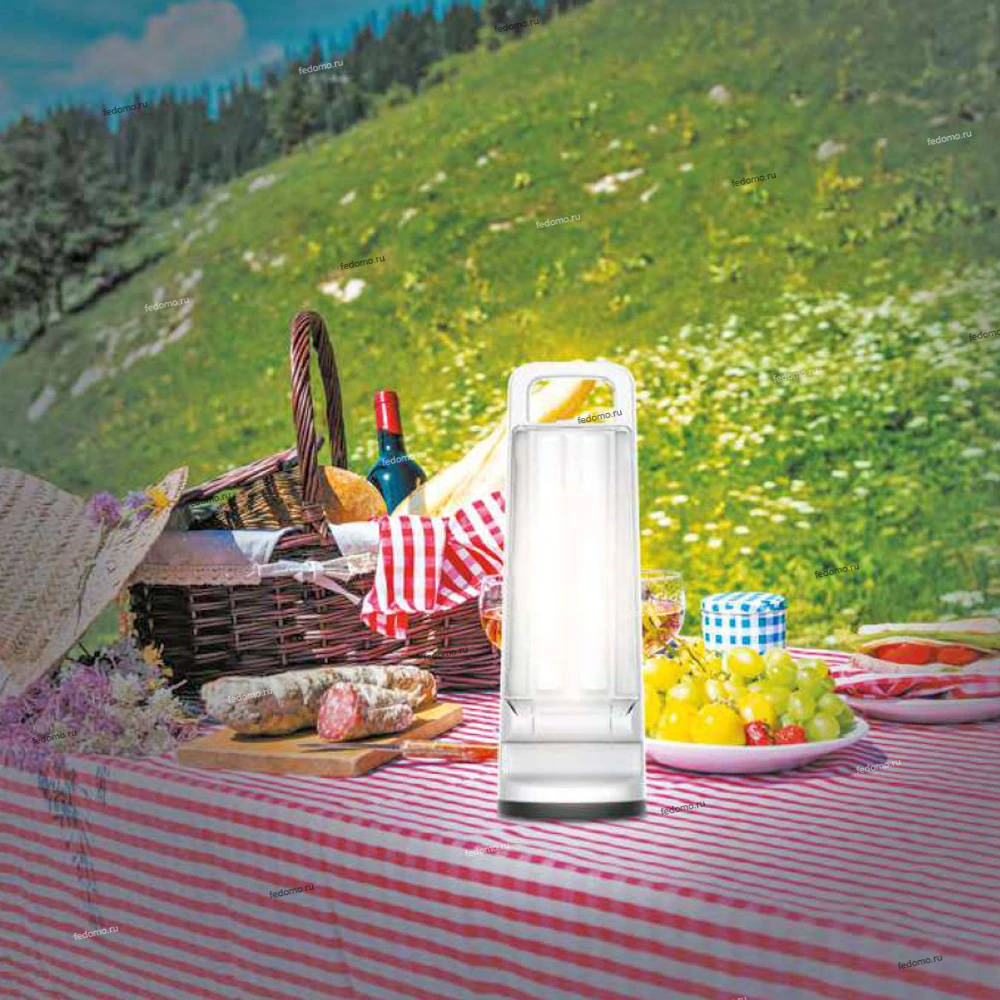 Материалы исполнения пластик. Цвет арматуры белый. Плафон в цвете: белый. Ландшафтный светильник серии обеспечит яркий интенсивный свет в любом помещении, лишённом электричества. Яркий, легкий и портативный он идеально подходит для кемпинга, туризма, рыбалки, чтения, и т.д. Данный светильник настоящая находка для дачи. Устойчивая конструкция позволяет удобно расположить светильник на плоской поверхности. Так же светильник имеет удобную скобу для подвешивания в палатках либо помещениях где это необходимо. Продолжительность работы светодиодов: более 25000 часов. Заряжать его можно от солнечной батареи или от сети 220В через порт USB (кабель USB входит в комплект). Светильник оснащен сенсорным переключателем – диммером, с помощью которого можно настроить работу светильника: короткое нажатие: светильник включен, светит одна лампа/светят две лампы/светильник выключен; длинное нажатие: настройка уровня яркости одной лампы/двух ламп. Наименование 357436 NT18 124 белый Ландшафтный светильник IP52 LED 3000K 8W SMD2835 220-240V TRIP.