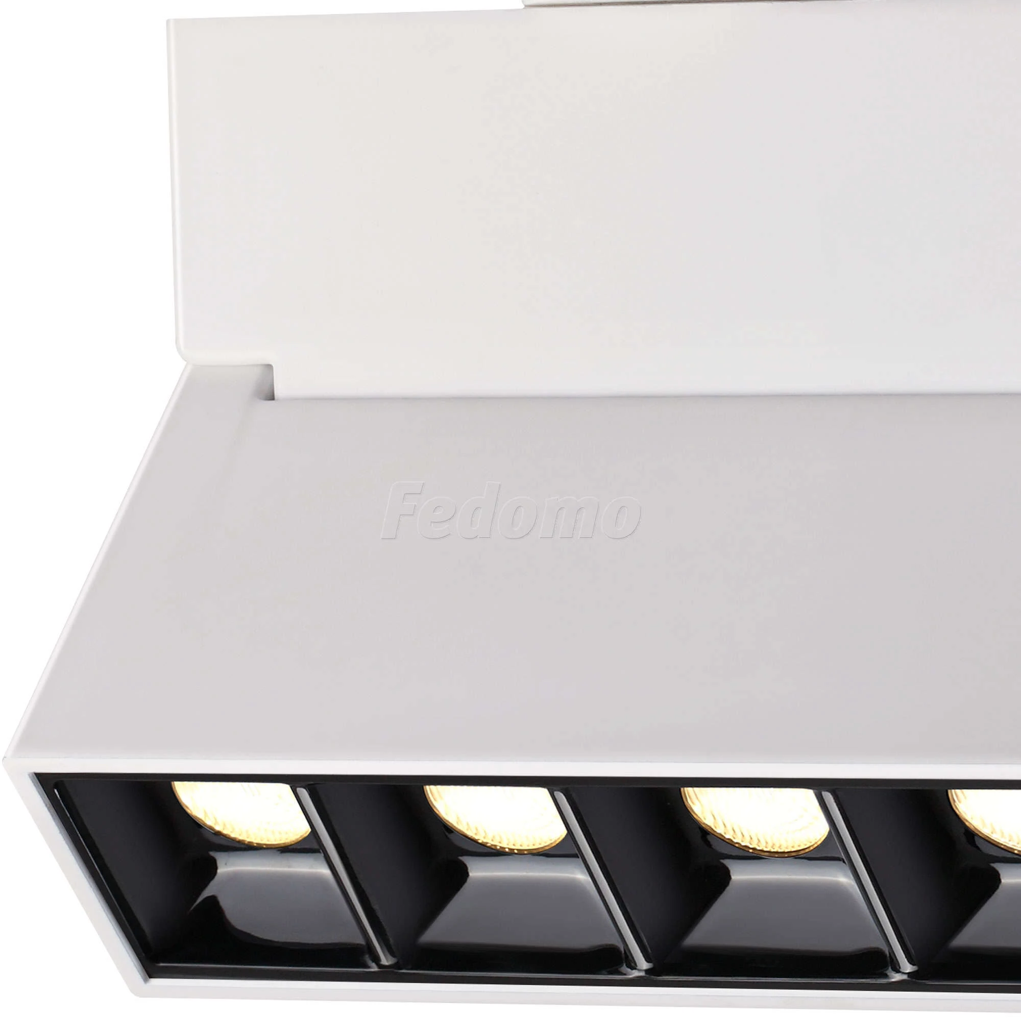 Материалы исполнения алюминий. Цвет арматуры белый. Плафон в цвете: белый. Особенность: угол поворота - 60°+355°. Наименование 357843 NT18 080 белый/чёрный Трековый светильник IP33 LED 3000К 13W 110-265V EOS.