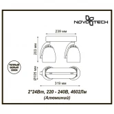 Материалы исполнения алюминий. Цвет арматуры белый. Плафон в цвете: белый. Угол повората 350 градусов. Наименование 357870 NT19 096 белый/черный Накладной светильник IP20 LED 3000К 2*24W 220-240V ZEUS.