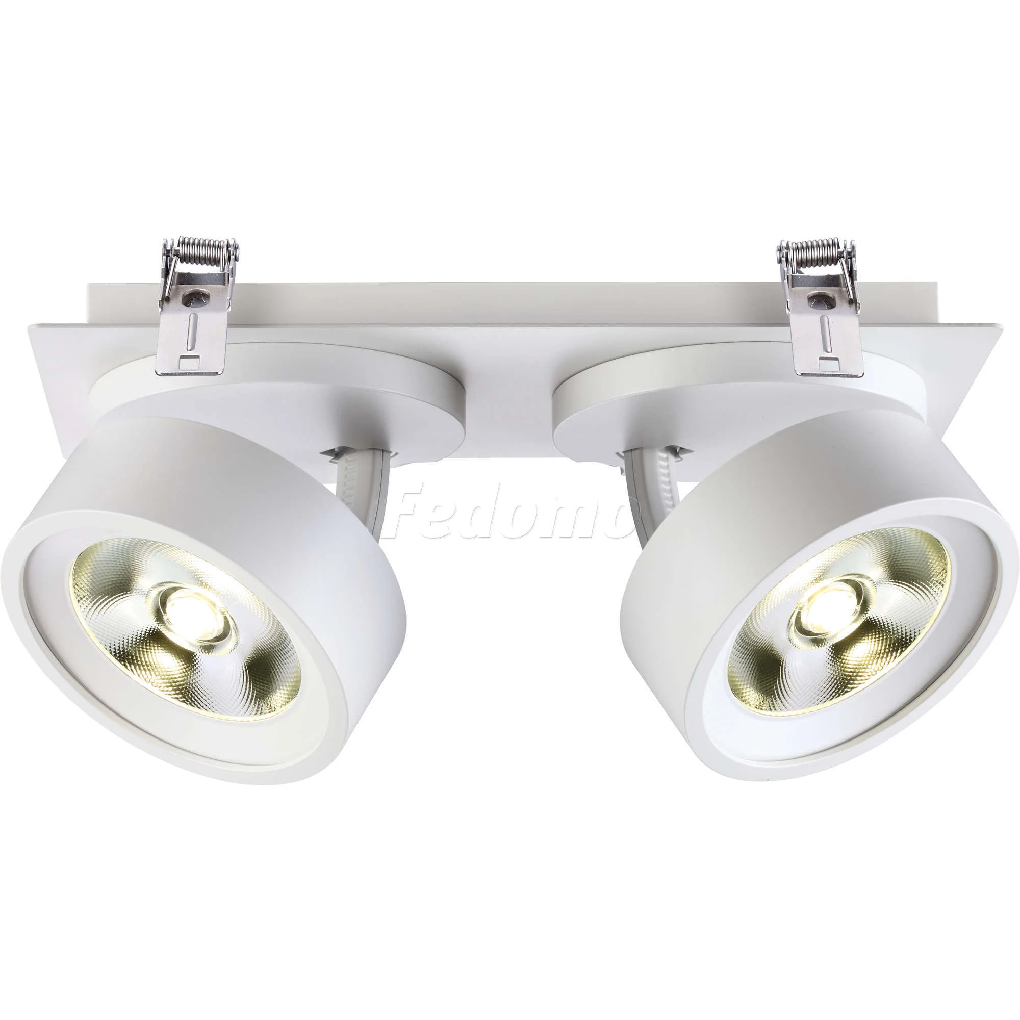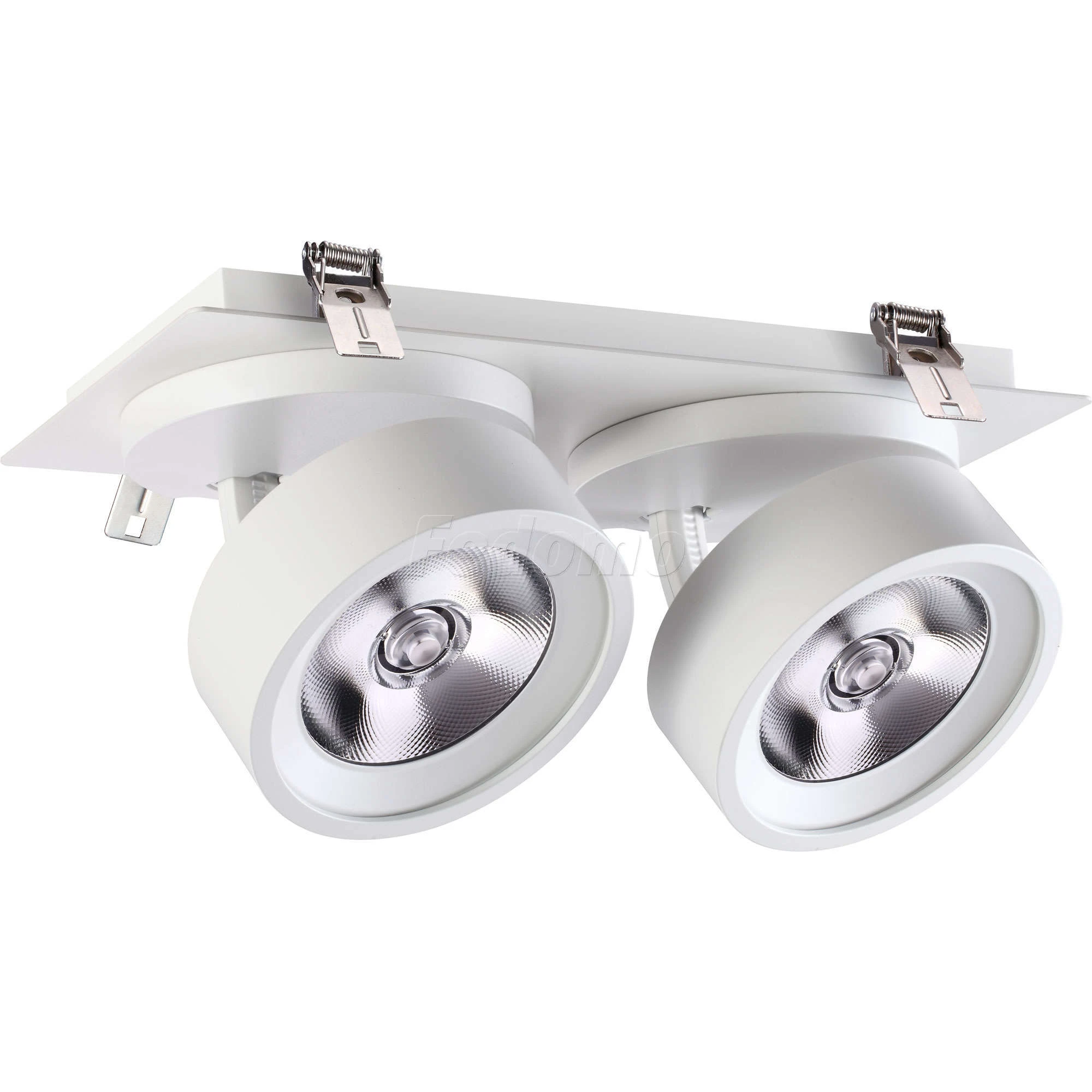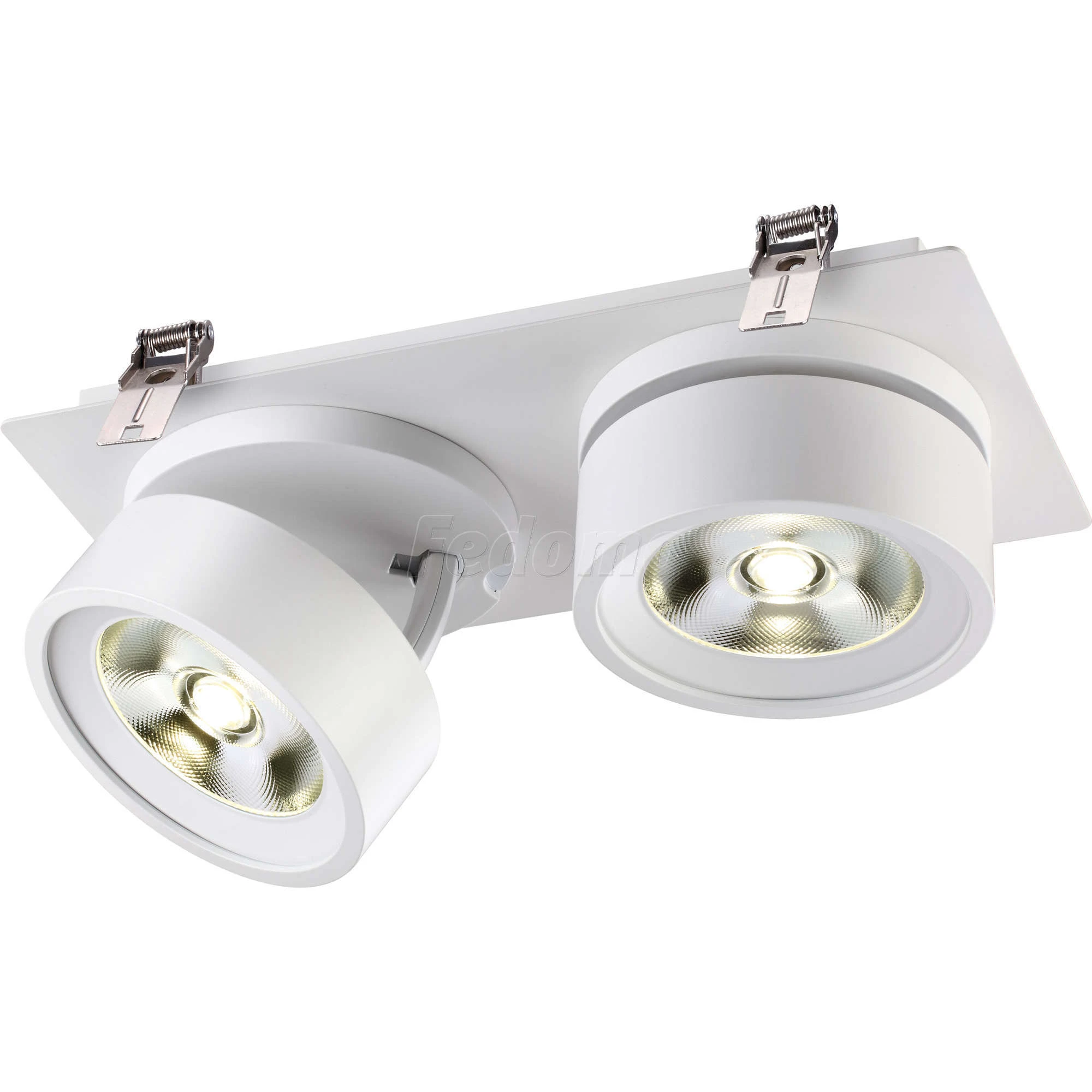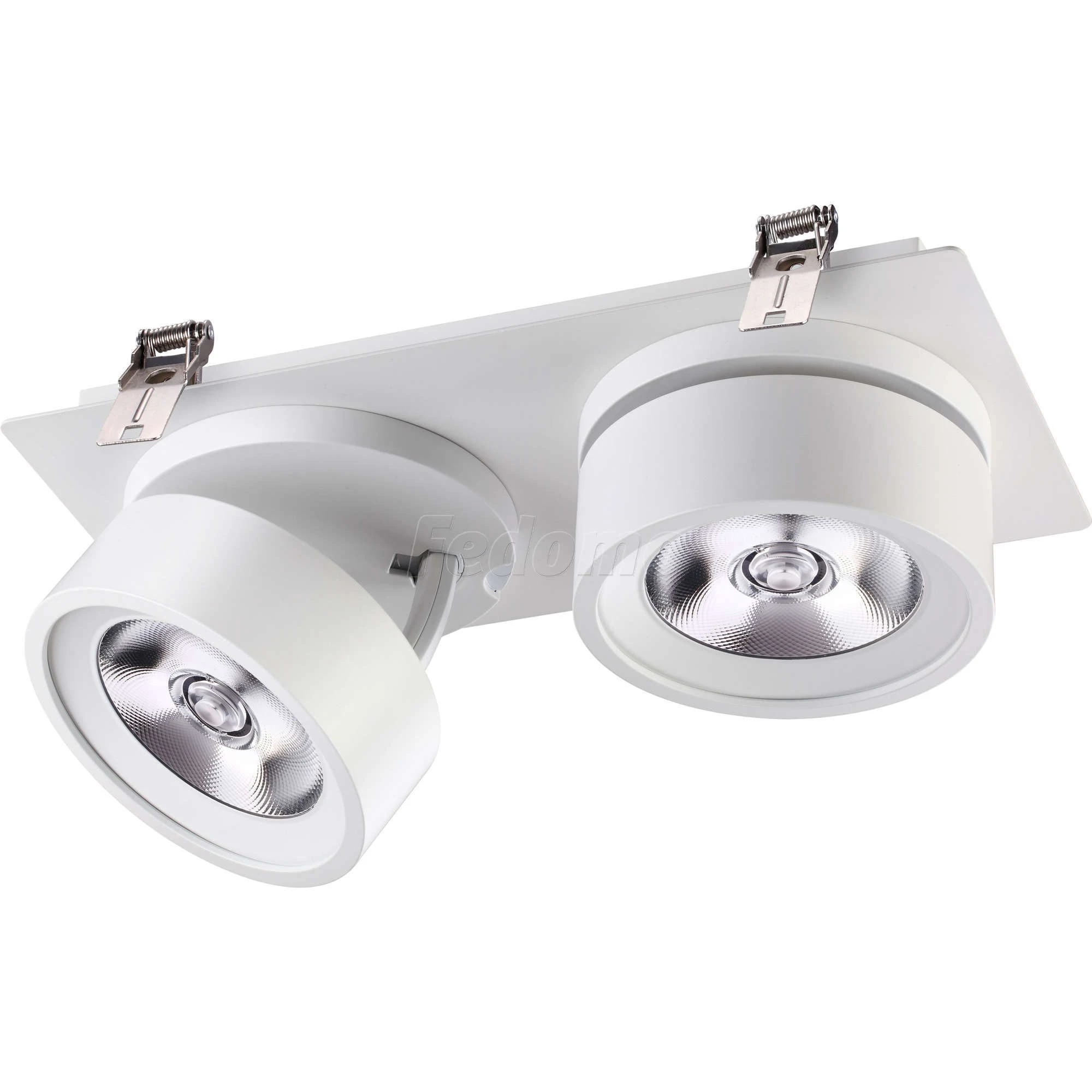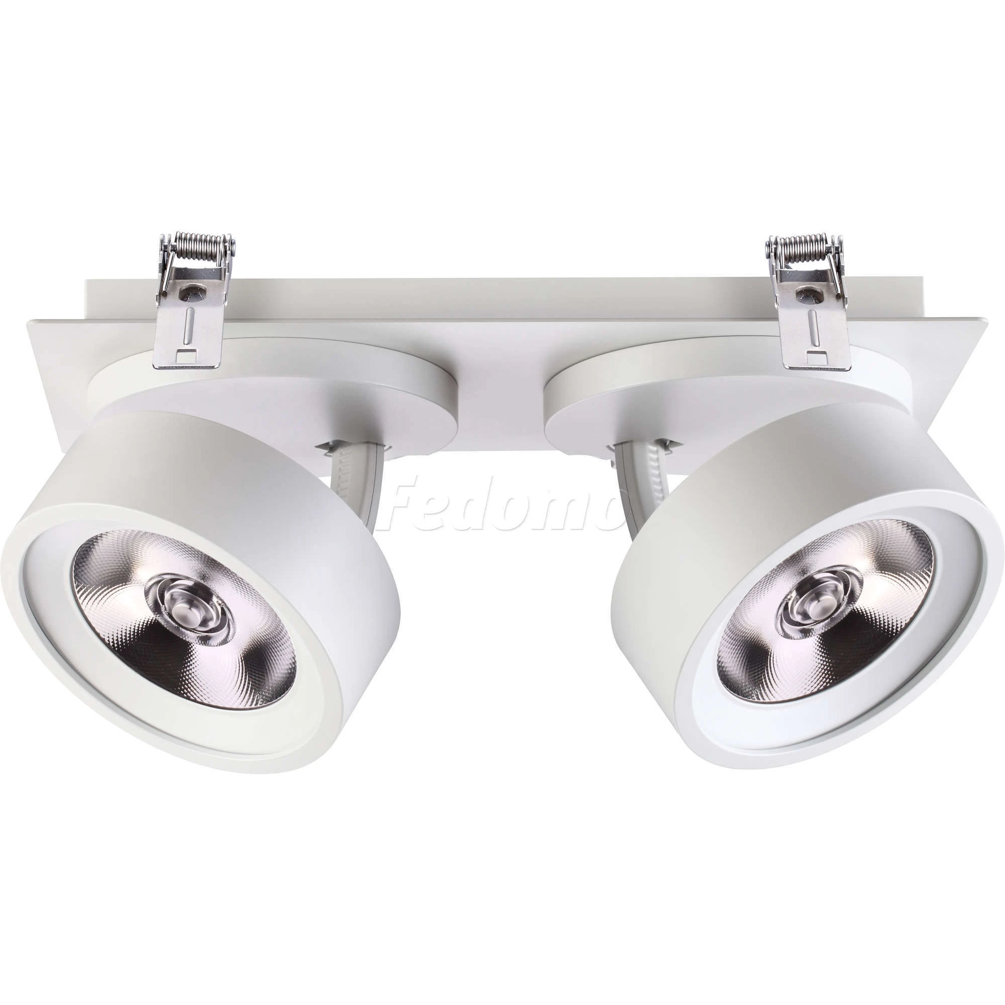 Материалы исполнения алюминий. Цвет арматуры белый. Плафон в цвете: белый. Особенность: угол поворота - 350°/60°. Наименование 357878 NT18 103 белый Встраиваемый светильник IP20 LED 3000К 2*25W 220-240V PROMETA.