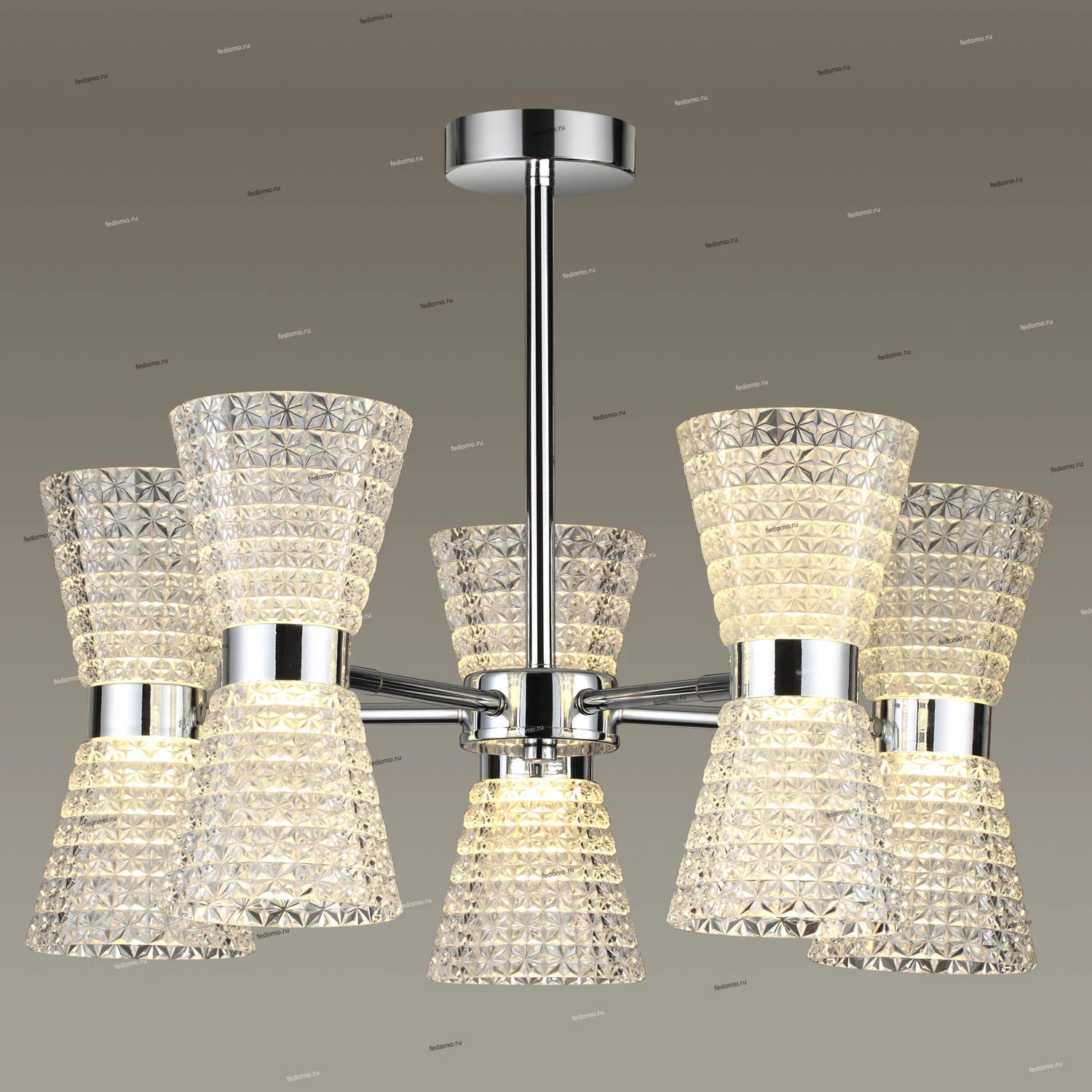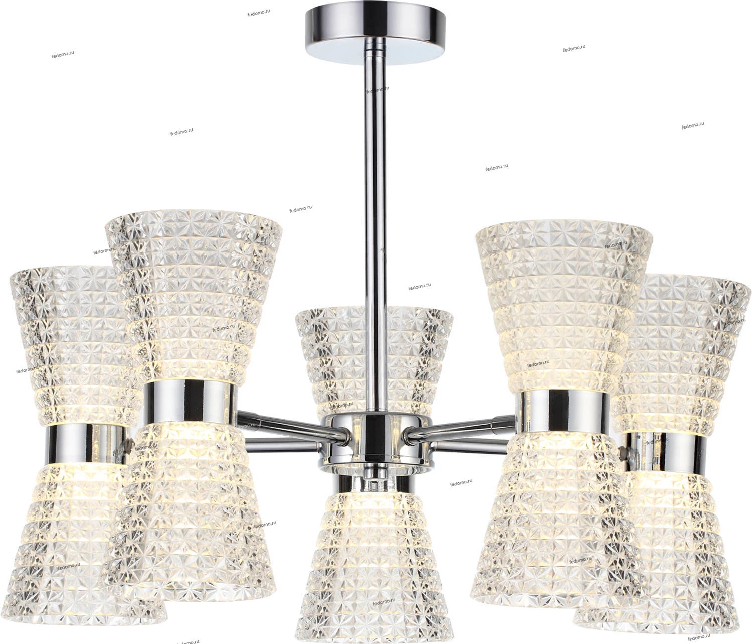 Люстра потолочная на штанге 3599/60CL из серии Boccale от компании Lumion устанавливается на монтажную пластину. Современная люстра украшена декоративными элементами из металла и прекрасно подойдет в качестве источника основного света для гостиной, кафе, спальни, кухни, оформленных в стиле модерн. Основной цвет модели - хром, материал арматуры - металл. Люстра имеет 5 плафонов со свечением вверх и вниз, материал изготовления - глянцевый акрил. Светодиодная модель с цоколем LED (5xLED), имеет 5 лампочек с общей мощностью 60W и напряжением 220V. Светильник имеет цветовую температуру 4000К и белое свечение. Габариты: длина - 155 мм, ширина - 120 мм, высота - 240 мм, диаметр - 500 мм. В комплекте есть лампочки. Лучшая цена и условия доставки на Lumion 3599/60CL в интернет-магазине Fedomo.ru.