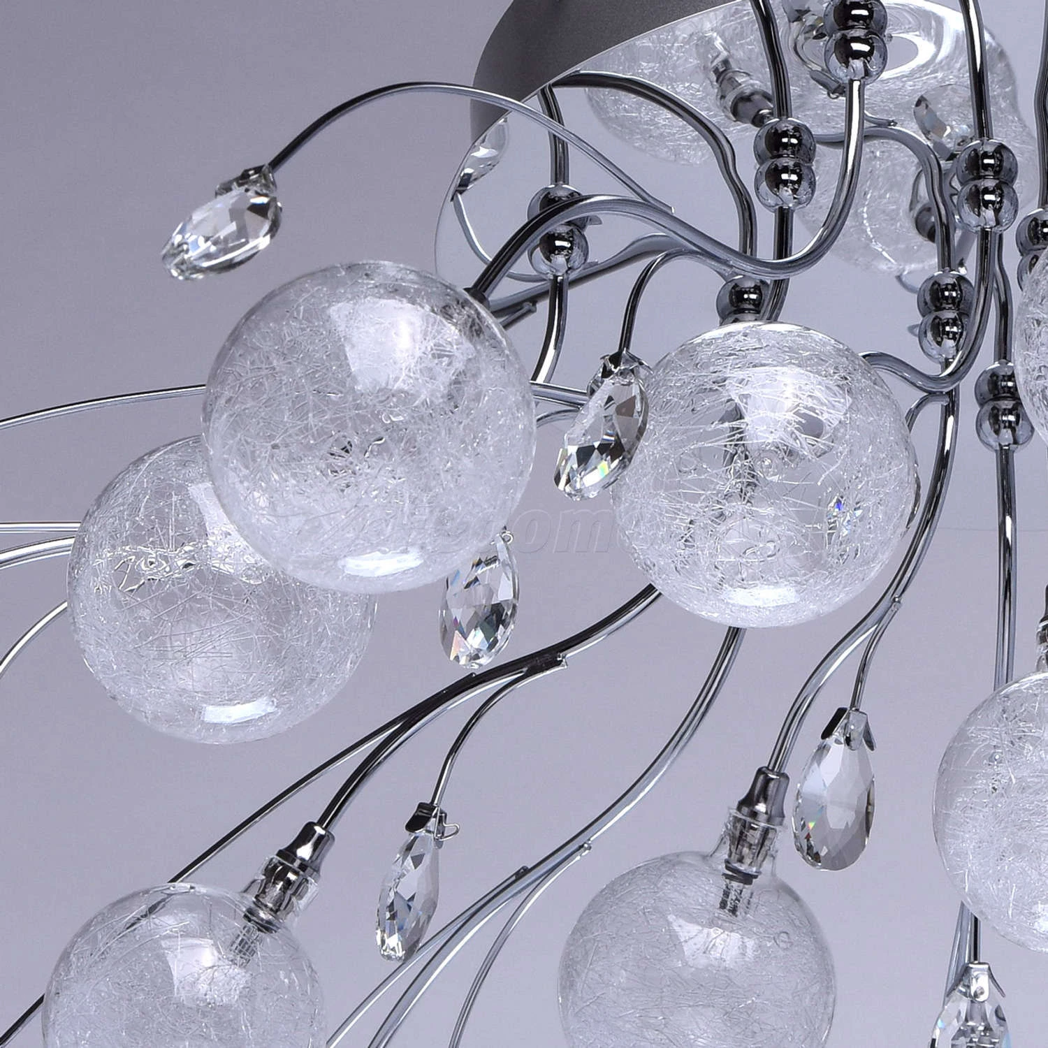 Плавные, причудливые завитки устремляют поток света в разных направлениях, словно хотят унести его во все укромные уголки вашей комнаты. Красивые стеклянные шары, наполненные стеклянной нитью, воздушны и легки, позволяют плавно играть со световым потоком.