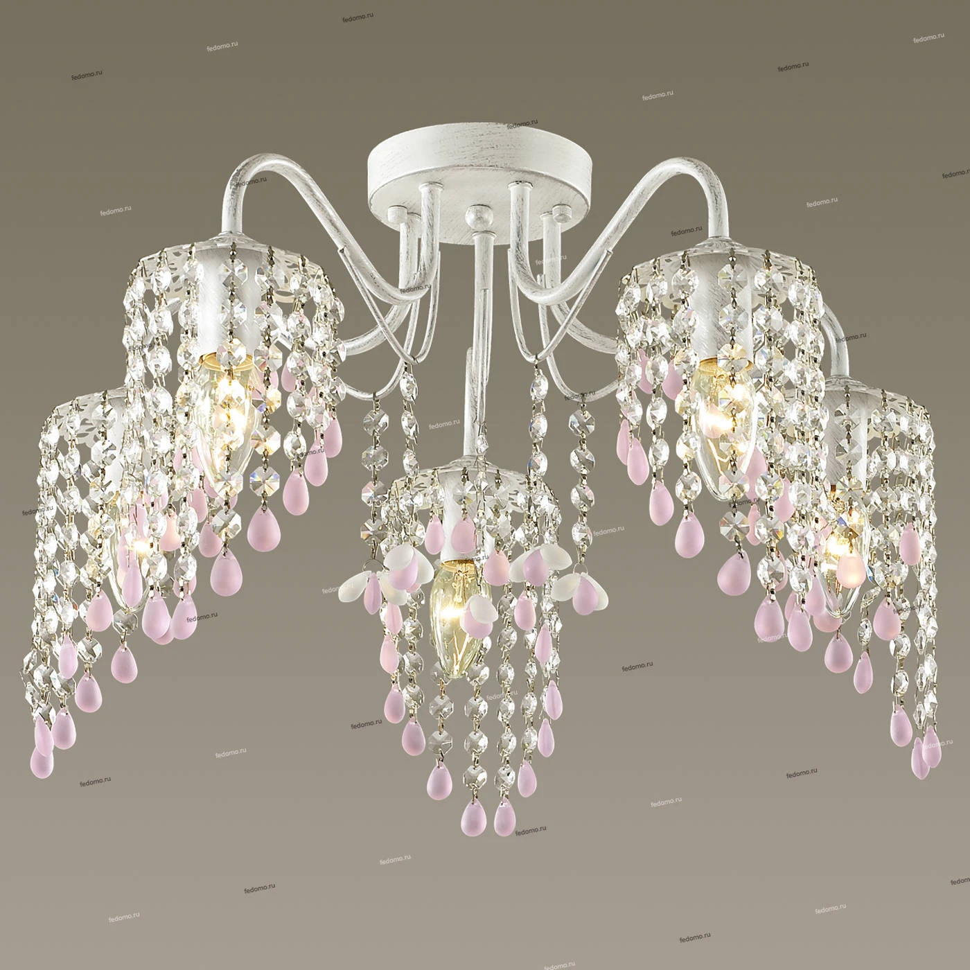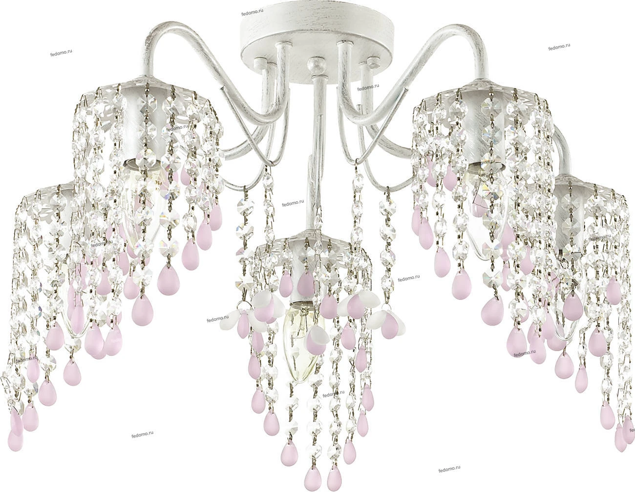 Материалы исполнения арматура, декор: металл; абажур: стекло, хрусталь. Цвет арматуры белый. Декор подвеска, материал декора стекло, хрусталь, цвет прозрачный. Изящный и одновременно компактный потолочныйсветильник Rosatta с хрустальными подвескаминежно-розового цвета станет изысканнымукрашением спальни или девичьей комнаты. Наименование 3605/5C LN18 202 белый Люстра потолочная E14 5*60W 220V ROSATTA.