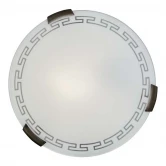 Материалы исполнения База - металл. Плафон - декорированное стекло. Цвет арматуры бронзовый. Плафон в цвете: белый. Особенность: полупрозрачный узор на плафоне. Декор орнамент на плафоне, материал декора краска, цвет белый. Наименование 361 SN 098 св-к GRECA стекло E27 3*100Вт D500.