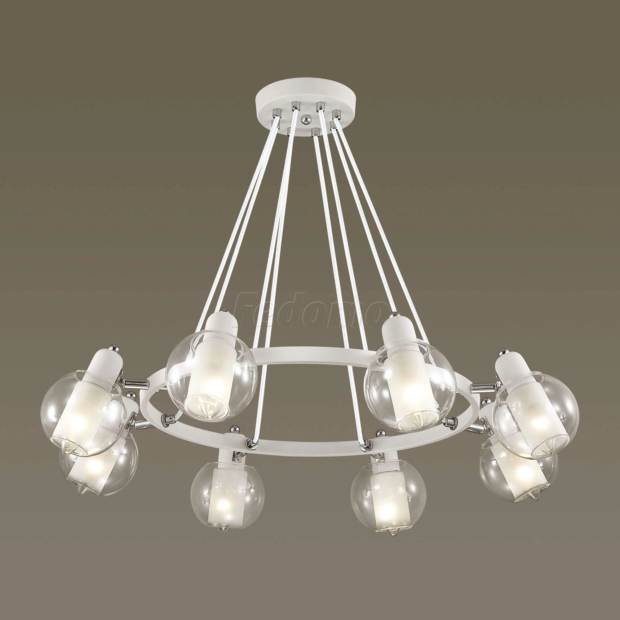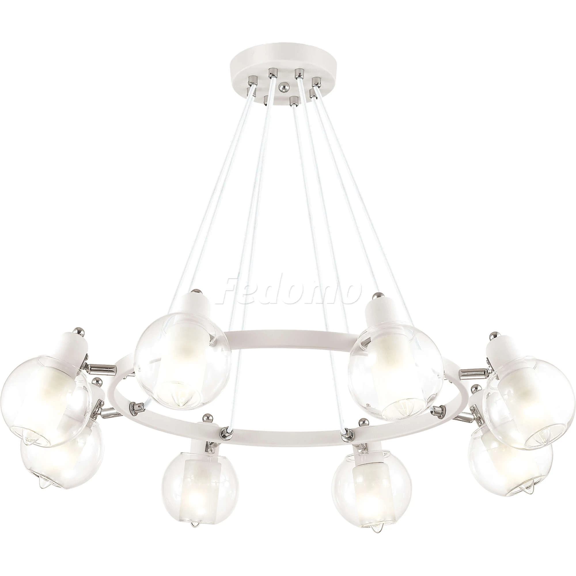 Люстра подвесная большая 3648/8 из серии Rita от компании Lumion устанавливается на монтажную пластину. Современная люстра прекрасно подойдет в качестве источника основного света для гостиной, прихожей и коридора, кафе, спальни, кухни, оформленных в стиле лофт. Основной цвет модели - белый, материал арматуры - металл. Люстра имеет 8 плафонов с направленным вниз светом, материал изготовления - глянцевое стекло. Модель оснащена цоколем E14 (8xE14), имеет 8 лампочек с общей мощностью 320W и напряжением 220V. Светильник поддерживает подключение диммера. Габариты: высота - 600 мм, диаметр - 760 мм. Лучшая цена и условия доставки на Lumion 3648/8 в интернет-магазине Fedomo.ru.