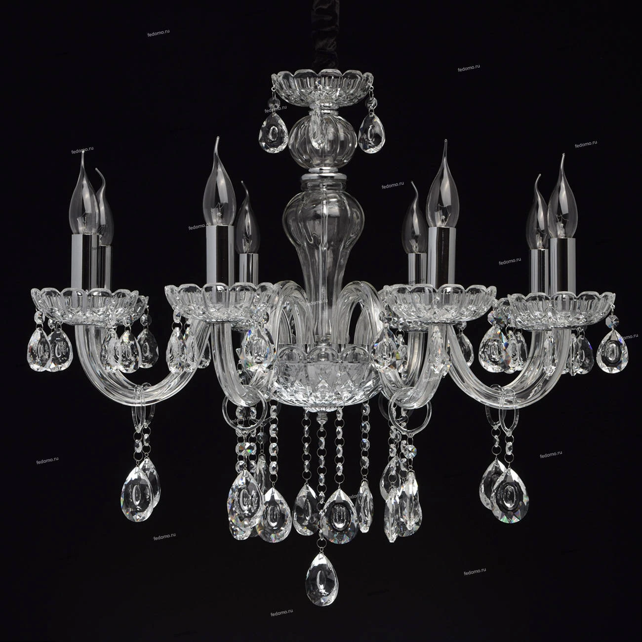 Люстра подвесная 367014308 из серии Каролина от компании MW-Light регулируется по высоте и устанавливается на металлический крюк. Классическая люстра в виде подсвечника украшена хрусталем и прекрасно подойдет в качестве источника основного света для гостиной, спальни, оформленных в стиле барокко. Основной цвет модели - прозрачный, материал арматуры - металл. Модель оснащена цоколем E14 (8xE14), имеет 8 лампочек с общей мощностью 320W и напряжением 220V. Светильник поддерживает подключение диммера. Габариты: высота - 1200 мм, диаметр - 700 мм, длина подвеса - 450 мм. Лучшая цена и условия доставки на MW-Light 367014308 в интернет-магазине Fedomo.ru.