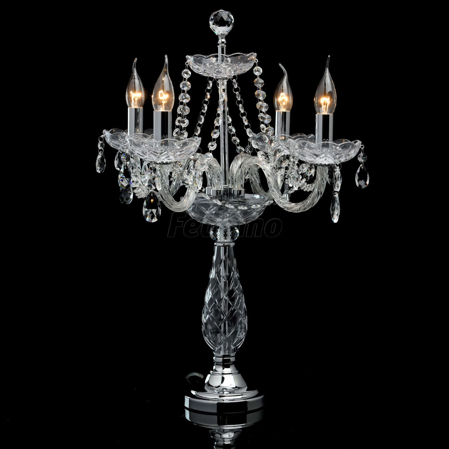 Интерьерная настольная лампа 367036304 из серии Каролина от компании MW-Light будет удачно смотреться на столе в гостиной, спальне, зале, оформленных в стиле классический, арт-деко. Интерьерная лампа в виде подсвечника имеет и 4 лампочки с цоколем E14, мощностью 40W и напряжением 220V, цветовую температуру 2700К. Модель регулируется по высоте устанавливается на основание. Основной материал и цвет арматуры - цвета хрома металл, стекло. Габариты изделия: высота - 630 мм. Лампочки в комплект не входят. Лучшая цена и условия доставки на MW-Light 367036304 в интернет-магазине Fedomo.ru.