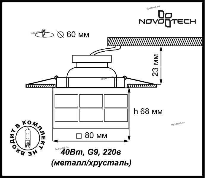 Материалы исполнения металл/хрусталь. Цвет арматуры хром. Плафон в цвете: прозрачный. Основание светильника сделано из металла. Это популярный и востребованный материал благодаря ряду качеств. К ним относится: повышенная прочность, износостойкость и долговечность. Декоративный плафон произведен из хрусталя. Он обладает высоким показателем плотности, прозрачности и блеска. Благодаря содержанию свинца (не менее 30%) и определённому подбору углов, образуемых гранями, изделия из хрусталя отличаются необыкновенно яркой, многоцветной игрой света, чарующей магией красоты, совершенства и роскоши. Наименование 369535 NT11 317 хром Встраиваемый НП светильник IP20 G9 40W 220V CUBIC.