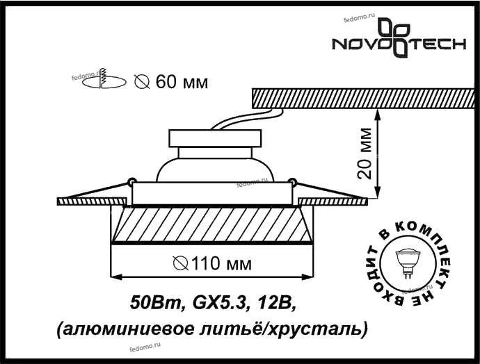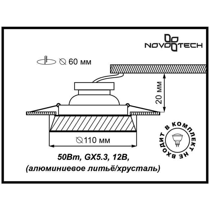 Точечный светильник встроенный 369549 из серии Storm от компании Novotech удачно впишется в интерьер кафе, кухни, оформленных в стиле модерн. Светильник имеет 1 плафон и 1 лампочку с цоколем GX5.3 с мощностью 50W, напряжением 12V. Модель поддерживает подключение диммера. Светильник устанавливается на распорную пружину. Основной цвет и материал арматуры - серый, металл цвета хрома, материал плафона - стекло. Лампочки в комплект не входят. Габариты модели: высота - 50 мм, диаметр - 110 мм. Лучшая цена и условия доставки на Novotech 369549 в интернет-магазине Fedomo.ru.