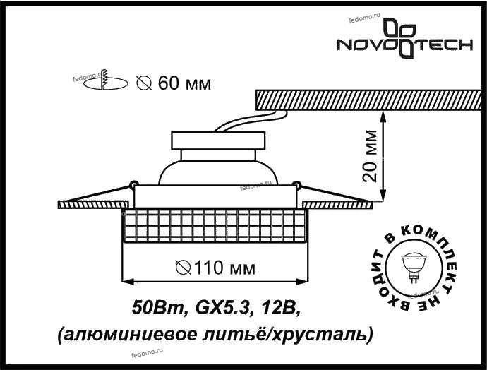 Точечный светильник встроенный 369550 из серии Storm от компании Novotech удачно впишется в интерьер кафе, кухни, оформленных в стиле модерн. Светильник имеет 1 плафон и 1 лампочку с цоколем GX5.3 с мощностью 50W, напряжением 12V. Модель поддерживает подключение диммера. Светильник устанавливается на распорную пружину. Основной цвет и материал арматуры - металл цвета хрома, материал плафона - стекло. Лампочки в комплект не входят. Габариты модели: высота - 50 мм, диаметр - 110 мм. Лучшая цена и условия доставки на Novotech 369550 в интернет-магазине Fedomo.ru.