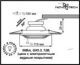 Точечный светильник встроенный 369858 из серии Vintage от компании Novotech удачно впишется в интерьер кафе, кухни, оформленных в стиле модерн. Светильник имеет 1 плафон и 1 лампочку с цоколем GX5.3 с мощностью 50W, напряжением 12V. Модель с направленным светом поддерживает подключение диммера. Светильник устанавливается на распорную пружину. Основной цвет и материал арматуры - цвета бронзы металл. В комплекте лампочки, трансформатор 12V. Габариты модели: высота - 70 мм, диаметр - 119 мм. Лучшая цена и условия доставки на Novotech 369858 в интернет-магазине Fedomo.ru.