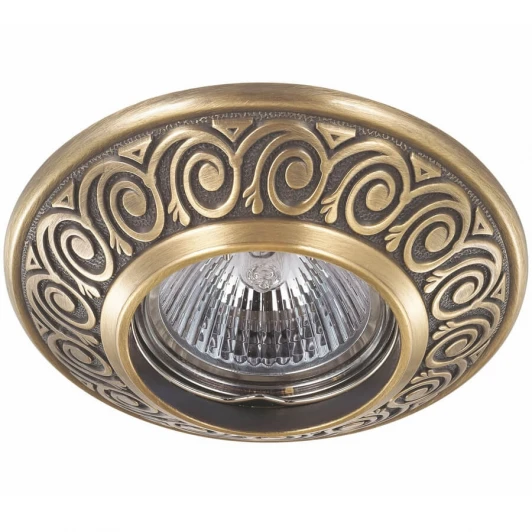 Материалы исполнения цинк с электролитным медным покрытием. Цвет арматуры бронза. Плафон в цвете: бронзовый. Светильник произведен из сплава цинка. Благодаря сравнительно высоким механическим и литейным качествам, изделия, выполненные из сплава цинка, отличаются высокой точностью деталей декора со сложной конфигурацией. Так же он обладает антикоррозийными свойствами. Наименование 370000 NT15 232 бронза Встраиваемый светильник IP20 GX5.3 50W 12V VINTAGE.
