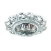 Материалы исполнения цинк с электролитным медным покрытием. Цвет арматуры белый. Плафон в цвете: белый. Светильник произведен из сплава цинка. Благодаря сравнительно высоким механическим и литейным качествам, изделия, выполненные из сплава цинка, отличаются высокой точностью деталей декора со сложной конфигурацией. Так же он обладает антикоррозийными свойствами. Наименование 370028 NT15 230 белый/хром Встраиваемый светильник IP20 GX5.3 50W 12V VINTAGE.