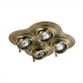 Материалы исполнения корпус - цинк с электролитным медным покрытием. Цвет арматуры бронза. Плафон в цвете: бронзовый. Угол повората 25 градусов. Светильник сделан из сплава цинка. Благодаря сравнительно высоким механическим и литейным качествам, изделия, выполненные из сплава цинка, отличаются высокой точностью деталей декора со сложной конфигурацией. Так же он обладает антикоррозийными свойствами. Наименование 370178 NT15 227 бронза Встраиваемыйсветильник ПВ IP20 GX5.3 4*50W 12V VINTAGE.