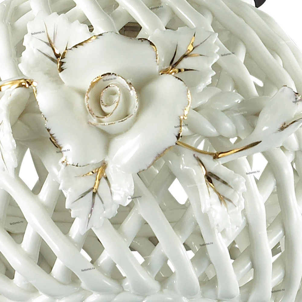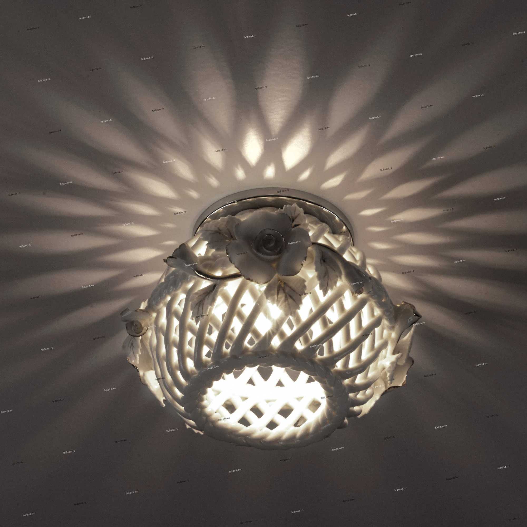 Материалы исполнения основание сталь/плафон с розами - фарфор ручная работа. Цвет арматуры белый. Плафон в цвете: белый. Фарфор – благороднейший и наиболее совершенный вид керамики. Во все времена он считался изысканным материалом для избранных, эталоном совершенства, подчеркивающим вкусы хозяев. Фарфор имеет высокую механическую прочность, химическую и термическую стойкость, электроизоляционные свойства и применяется для создания высококачественных светильников во всём мире. Фарфоровый светильник – это элегантность и тонкость линий в одном источнике освещения. Мягкие линии узоров прекрасно впишут такой светильник в интерьер гостиной, кухни или спальни. Наименование 370207 NT16 250 белый/золото Встраиваемый декоративный светильник IP20 G9 40W 220V FARFOR.