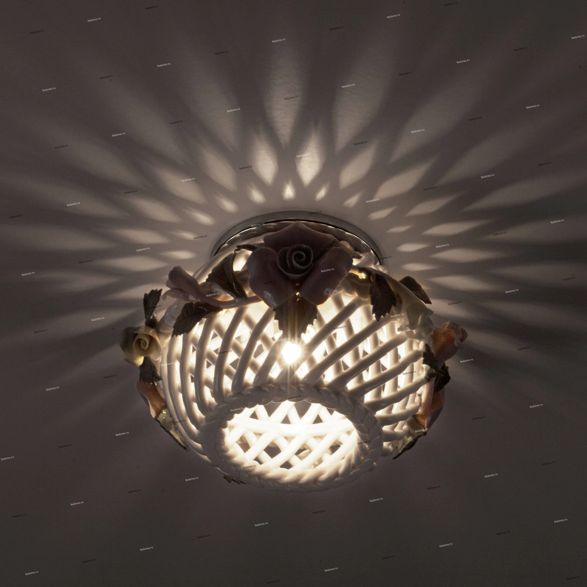Материалы исполнения основание сталь/плафон с розами - фарфор ручная работа. Цвет арматуры белый. Плафон в цвете: белый. Фарфор – благороднейший и наиболее совершенный вид керамики. Во все времена он считался изысканным материалом для избранных, эталоном совершенства, подчеркивающим вкусы хозяев. Фарфор имеет высокую механическую прочность, химическую и термическую стойкость, электроизоляционные свойства и применяется для создания высококачественных светильников во всём мире. Фарфоровый светильник – это элегантность и тонкость линий в одном источнике освещения. Мягкие линии узоров прекрасно впишут такой светильник в интерьер гостиной, кухни или спальни. Наименование 370208 NT16 250 белый с декором Встраиваемый декоративный светильник IP20 G9 40W 220V FARFOR.