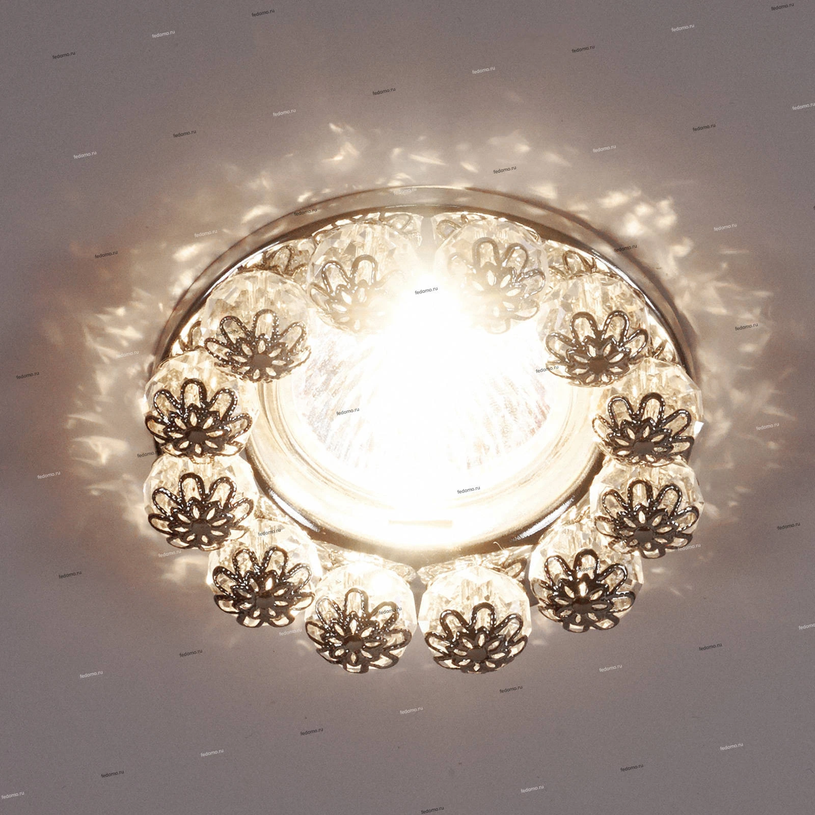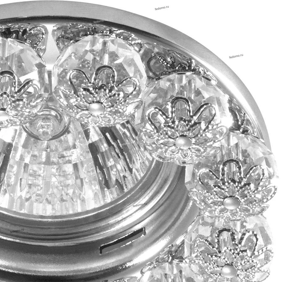 Материалы исполнения металл/хрусталь. Цвет арматуры хром. Плафон в цвете: прозрачный. Корпус светильника сделан из металла. Это популярный и востребованный материал благодаря ряду качеств. К ним относится: повышенная прочность, износостойкость и долговечность. Любому интерьеру он придаст солидности и завершенности, поможет расставить акценты. Декоративные украшения сделаны из хрусталя. Огранка хрусталя, подобно огранке драгоценных камней, позволяет в полной мере проявить свойства, обусловленные большим показателем преломления и дисперсией. Наименование 370225 NT16 282 хром Встраиваемый декоративный светильник IP20 GX5.3 50W 12V MALINY.