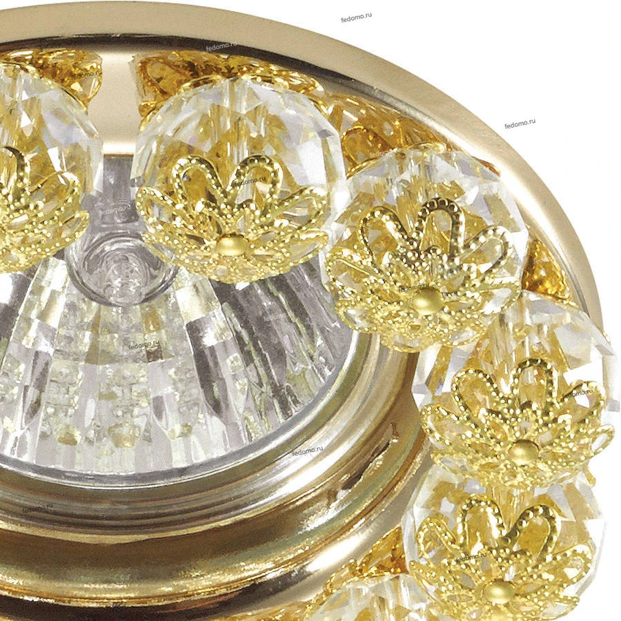 Материалы исполнения металл/хрусталь. Цвет арматуры золото. Плафон в цвете: прозрачный. Корпус светильника сделан из металла. Это популярный и востребованный материал благодаря ряду качеств. К ним относится: повышенная прочность, износостойкость и долговечность. Любому интерьеру он придаст солидности и завершенности, поможет расставить акценты. Декоративные украшения сделаны из хрусталя. Огранка хрусталя, подобно огранке драгоценных камней, позволяет в полной мере проявить свойства, обусловленные большим показателем преломления и дисперсией. Наименование 370226 NT16 282 золото Встраиваемый декоративный светильник IP20 GX5.3 50W 12V MALINY.